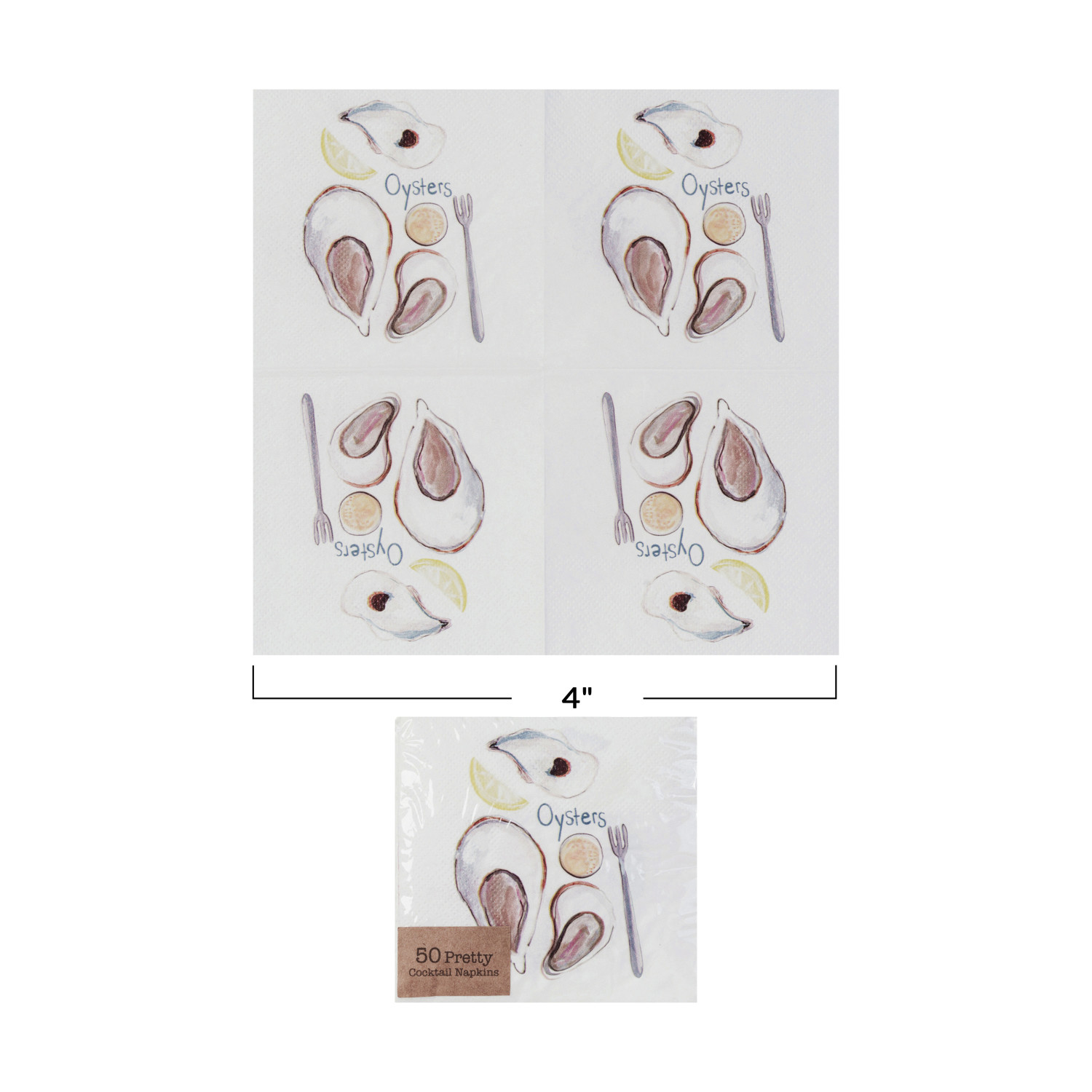 Catalog Name: 4" Square Paper Cocktail Napkins w/ "Oysters," Multi Color (Contains 50 Folded Pieces) ©