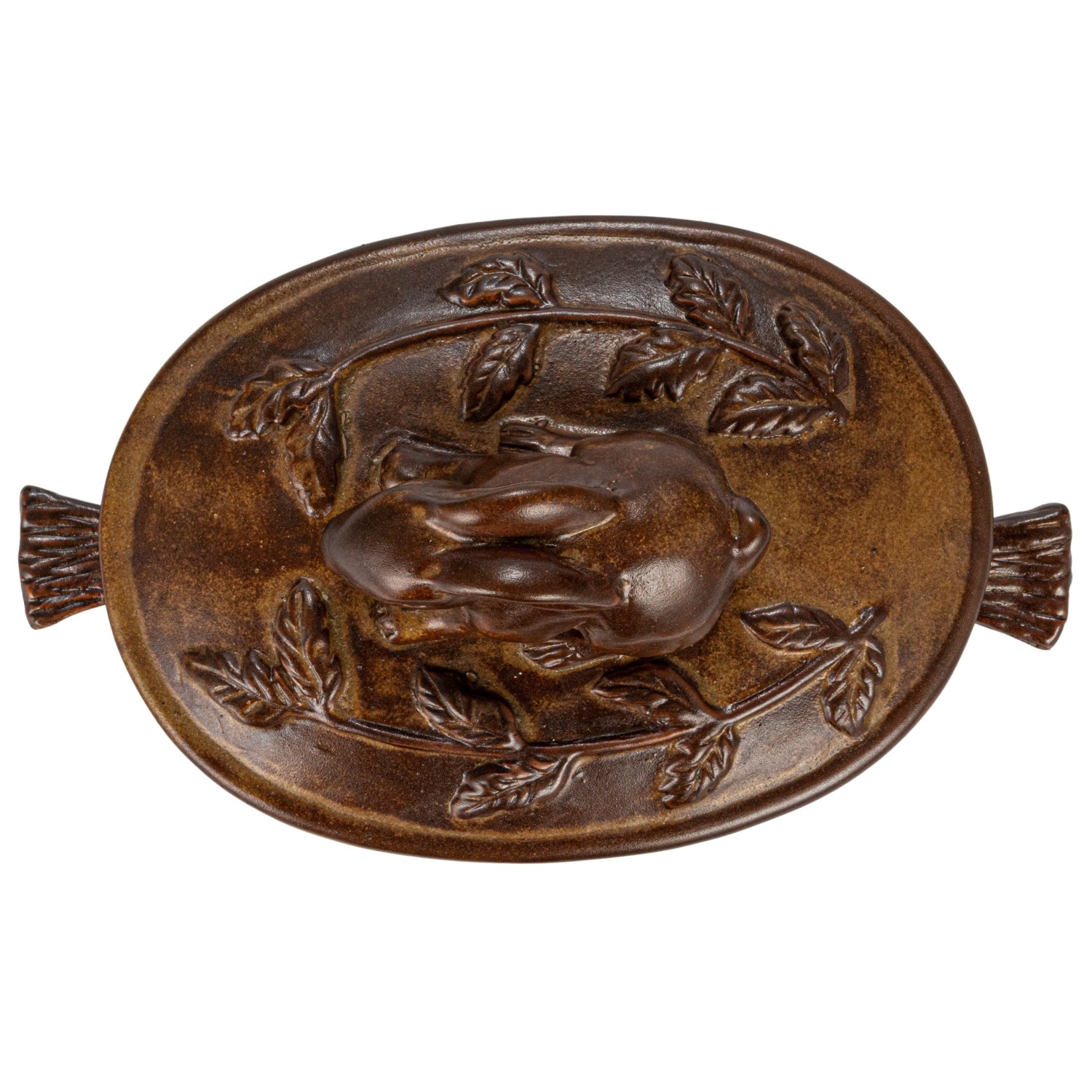 Catalog Name: 9"L x 5-1/4"W x 5"H 3 Cup Stoneware Baker w/ Rabbit, Reactive Glaze, Brown (Each One Will Vary)