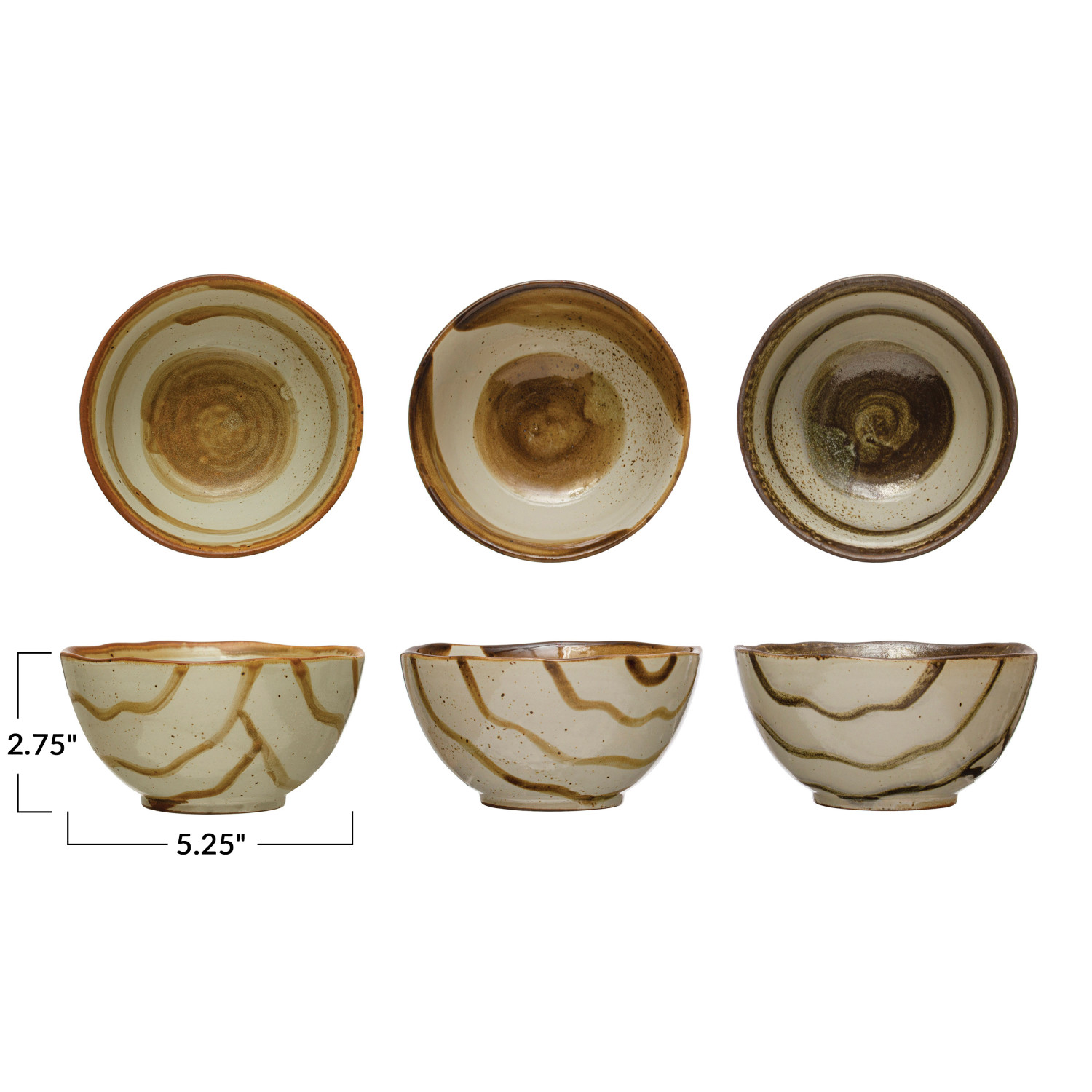 Catalog Name: 5-1/4" Round x 2-3/4"H Stoneware Bowl, Reactive Glaze, Multi Color, 3 Colors (Each One Will Vary)