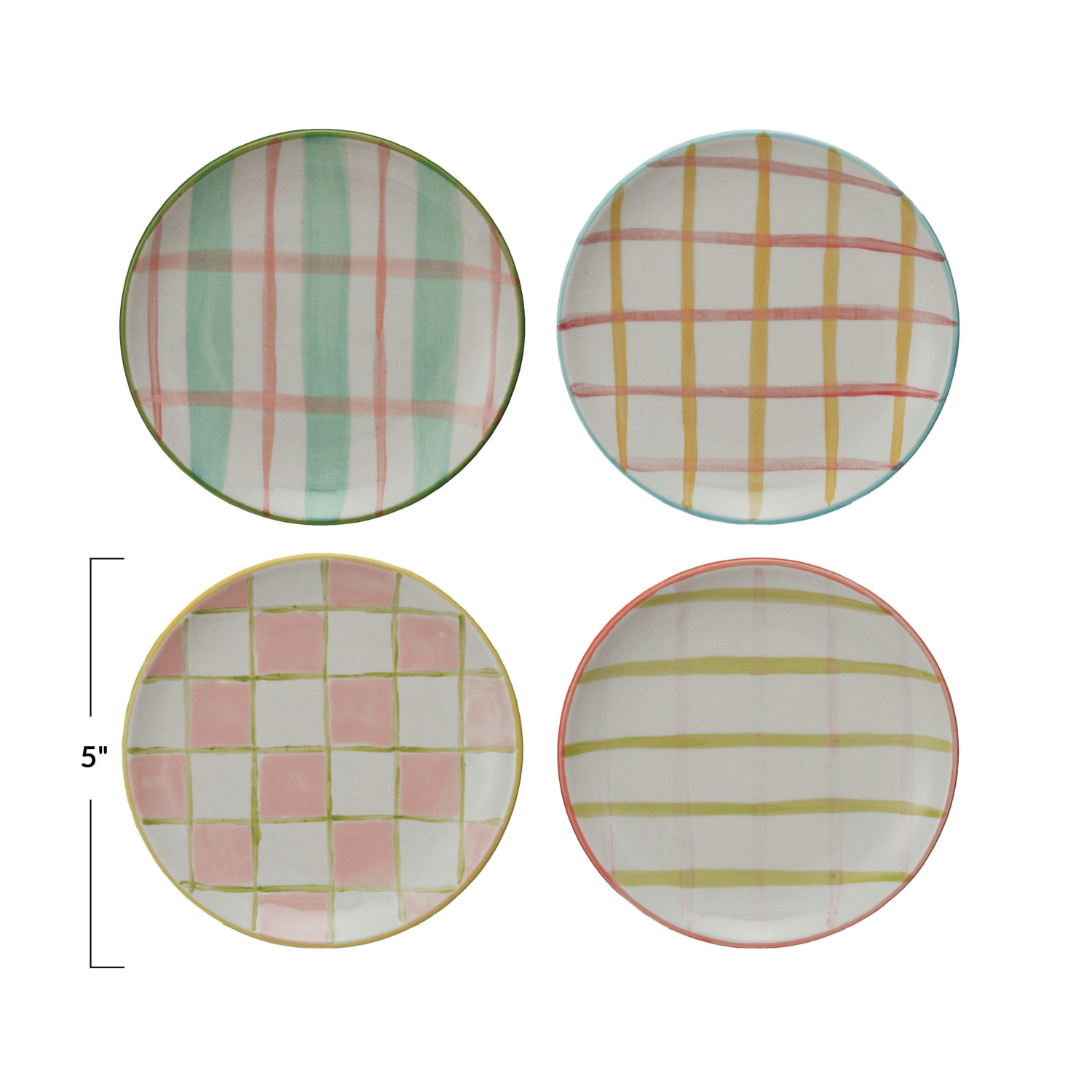 Catalog Name: 5" Round Hand-Painted Stoneware Plate w/ Pattern, Multi Color, 4 Styles