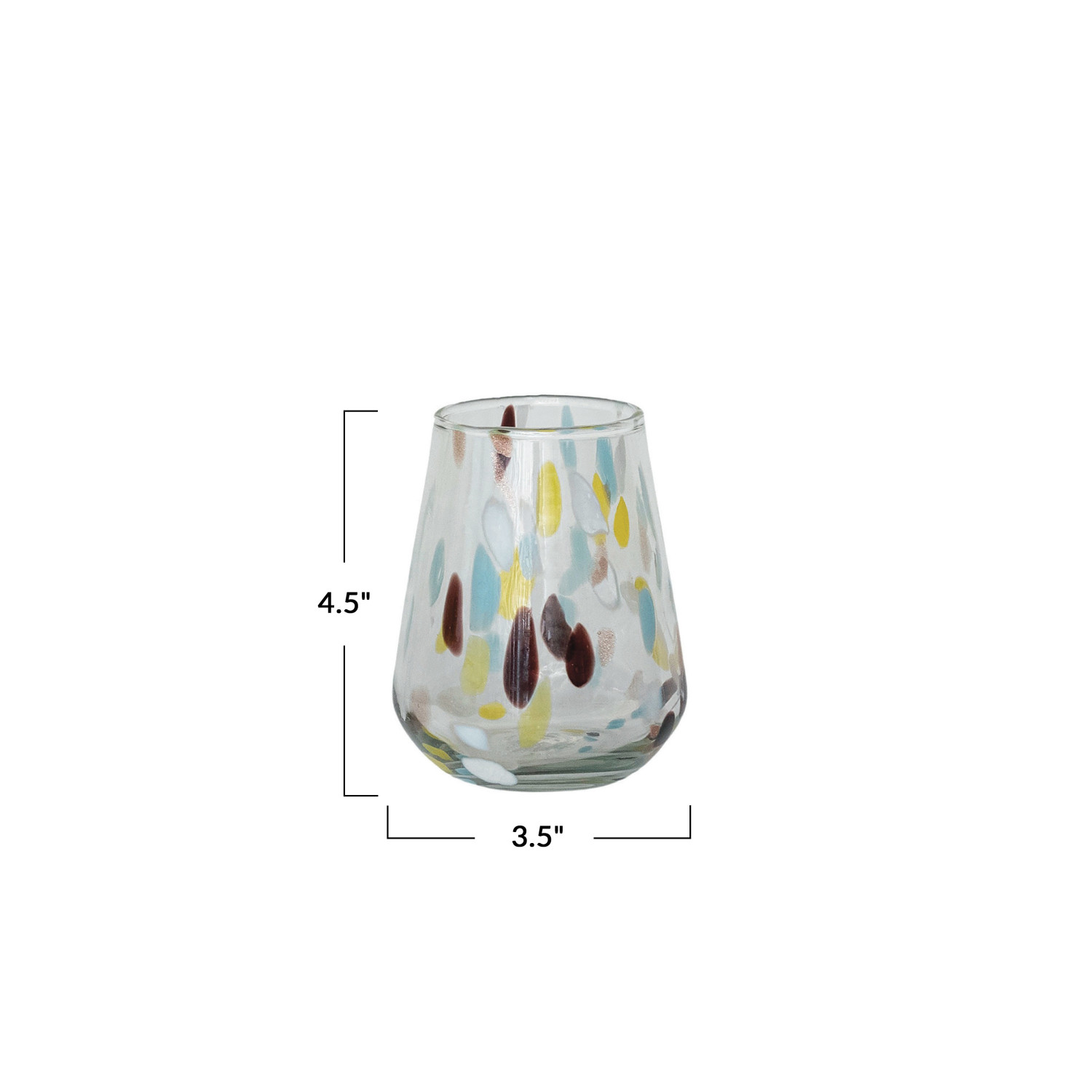 Catalog Name: 3-1/2" Round x 4-1/4"H 12 oz. Hand-Blown Confetti Drinking Glass, Multi Color