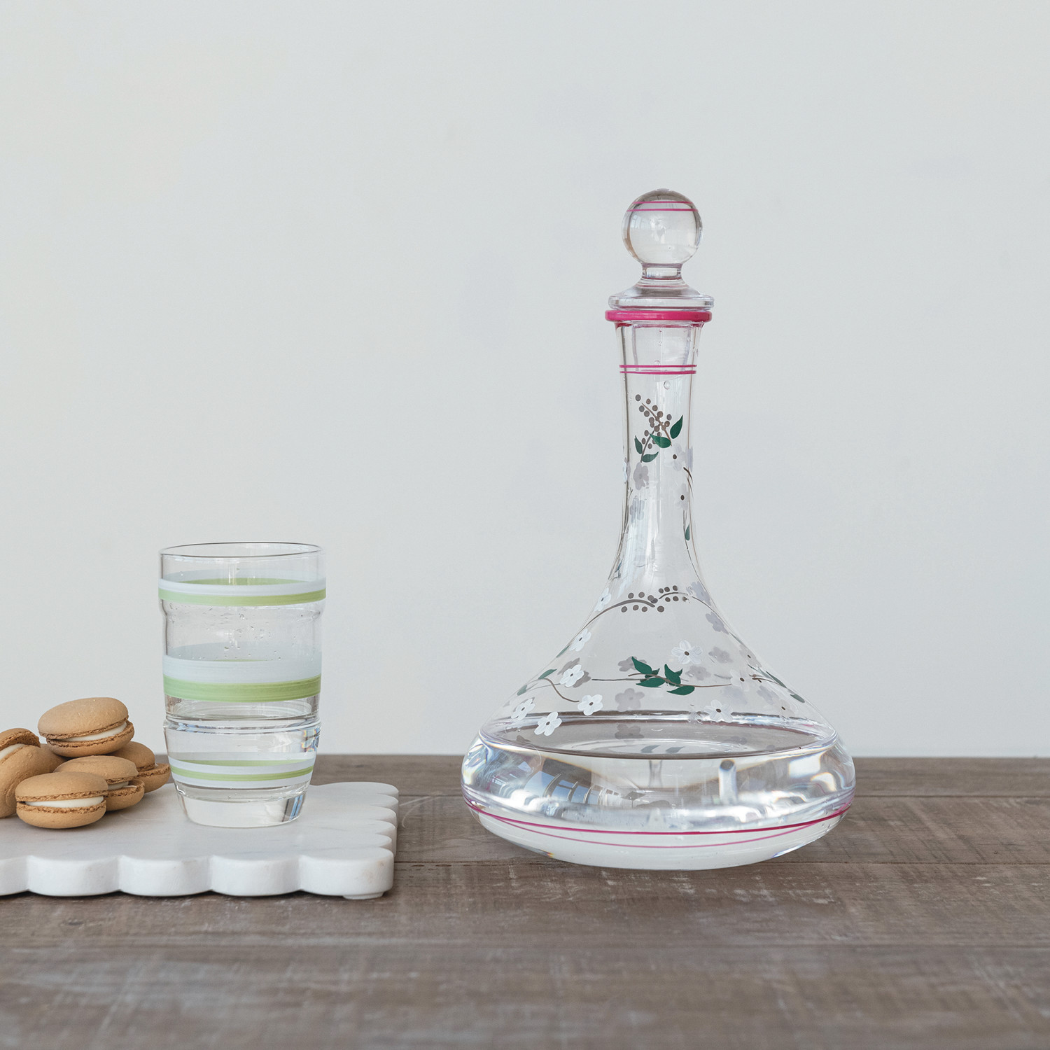 Catalog Name: 3" Round x 5"H 14 oz. Vintage Reproduction Drinking Glass w/ Hand-Painted Stripes, Green & White