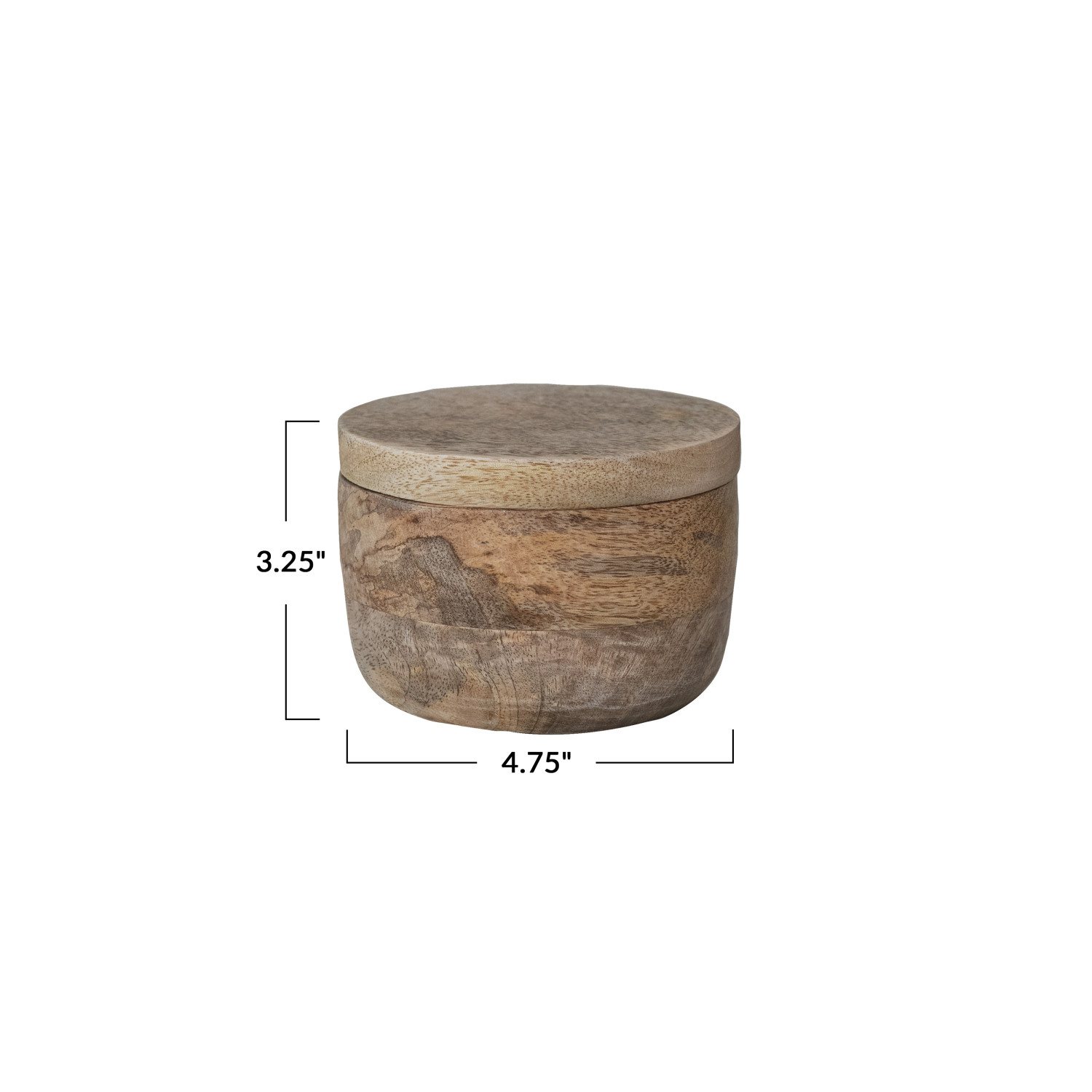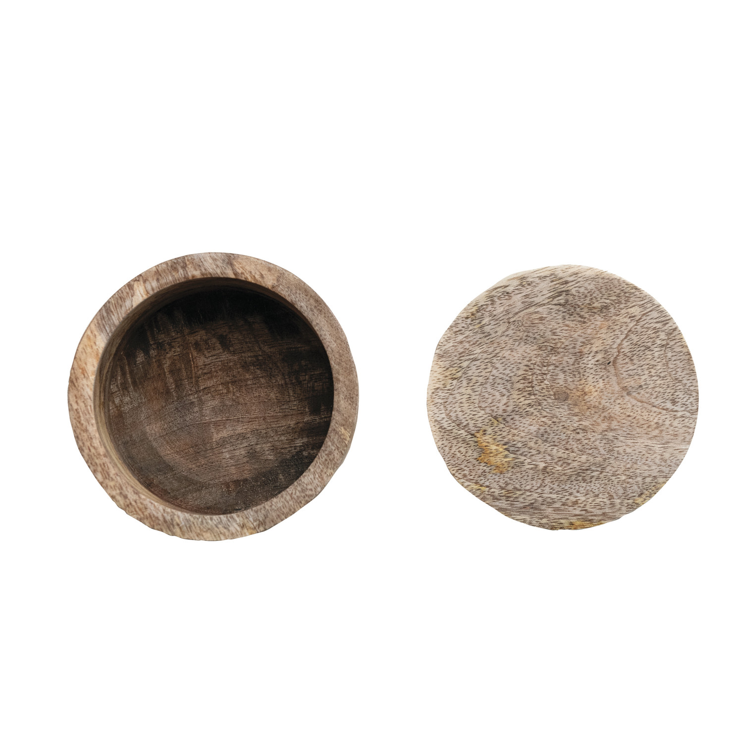 Catalog Name: 4-3/4" Round x 3-1/4"H Mango Wood Salt Cellar w/ Lid, Natural