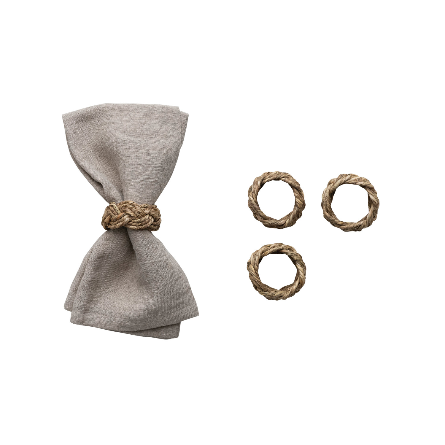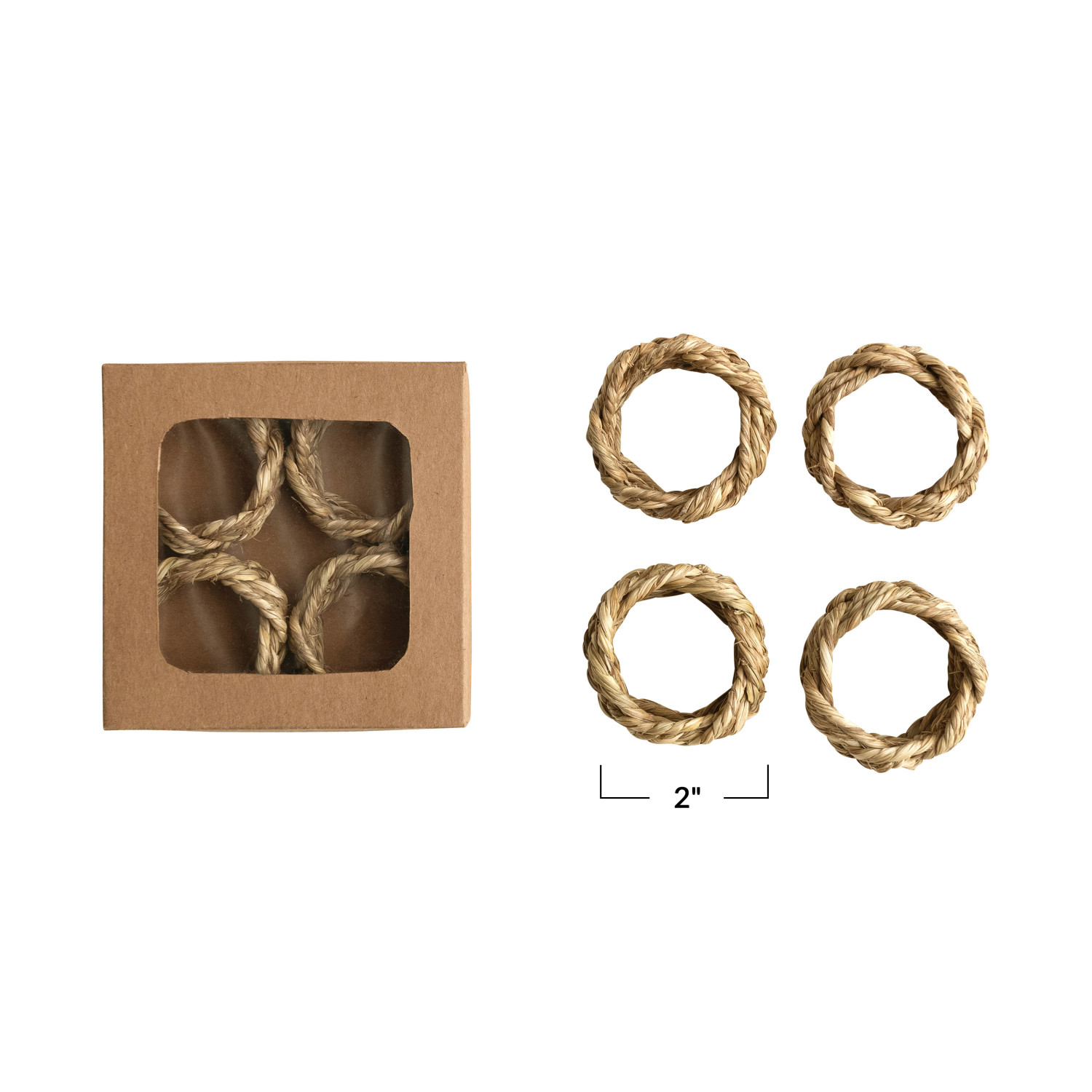 Catalog Name: 2" Round Braided Seagrass Napkin Rings, Natural, Boxed Set of 4