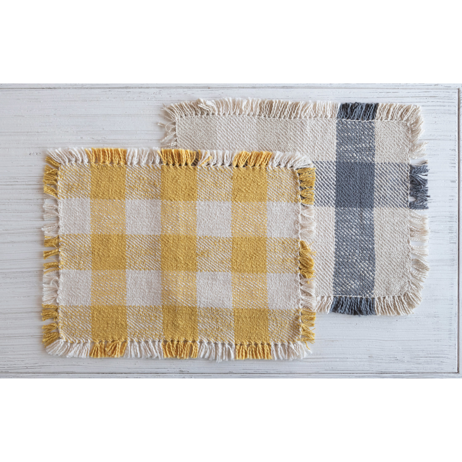 Woven Cotton Placemat with Buffalo Check and Fringe