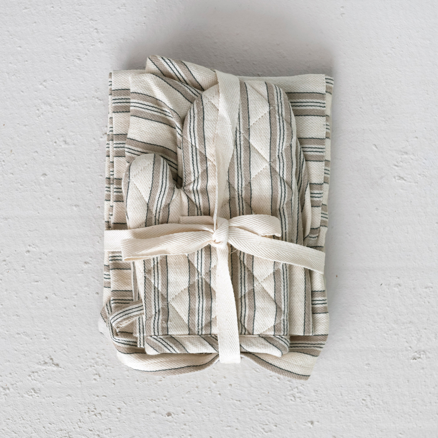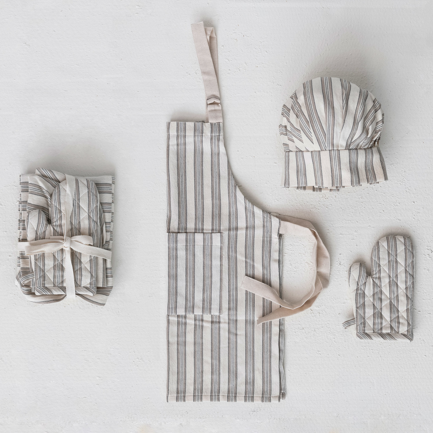 Cotton Child Apron w/ Chef Hat, Oven Mitt & Stripes, Set of 3