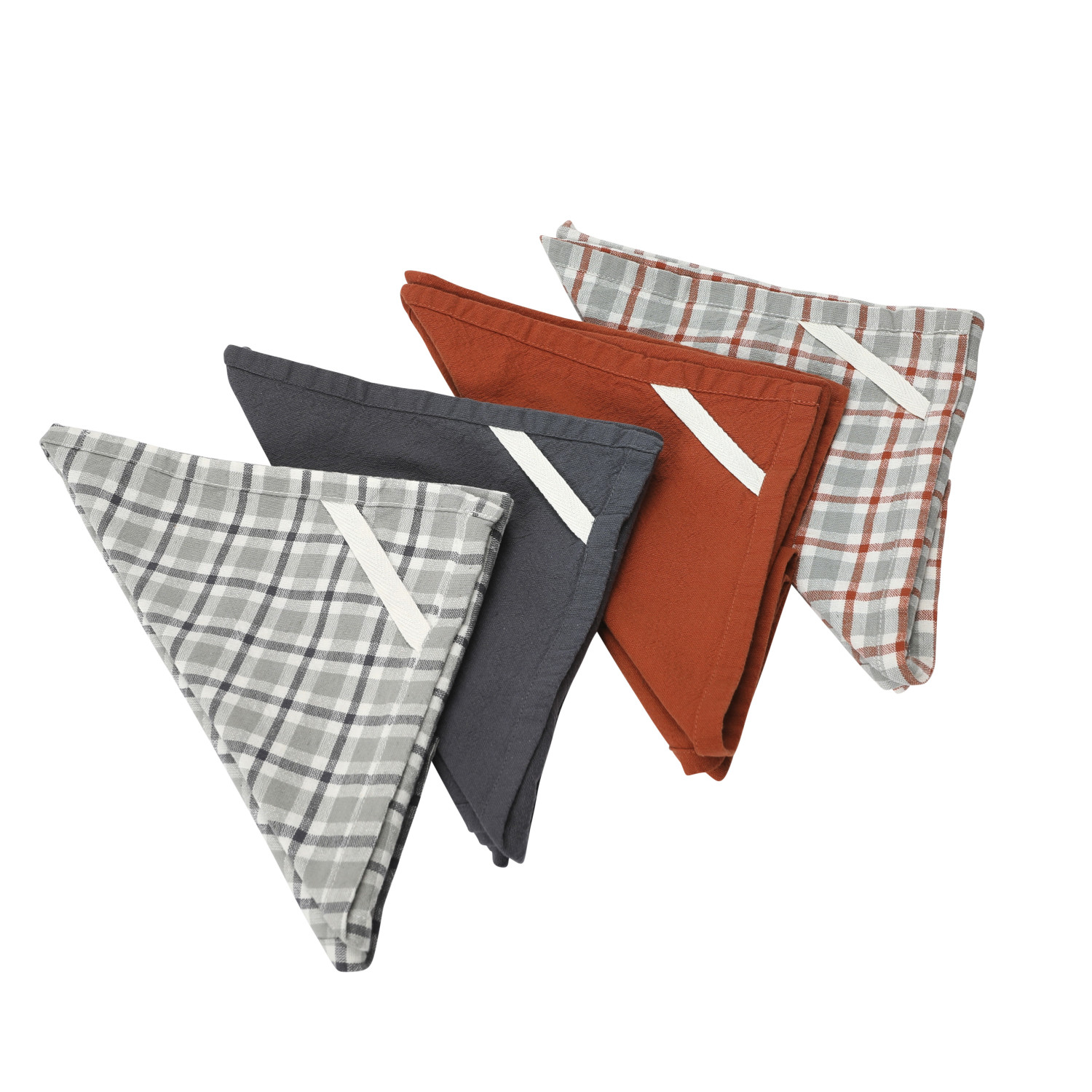 This stylishly versatile set of tea towels showcases 4 bold hues. Machine Wash Warm, Gentle Cycle, Do Not Bleach, Tumble Dry Low, Warm Iron if Needed.