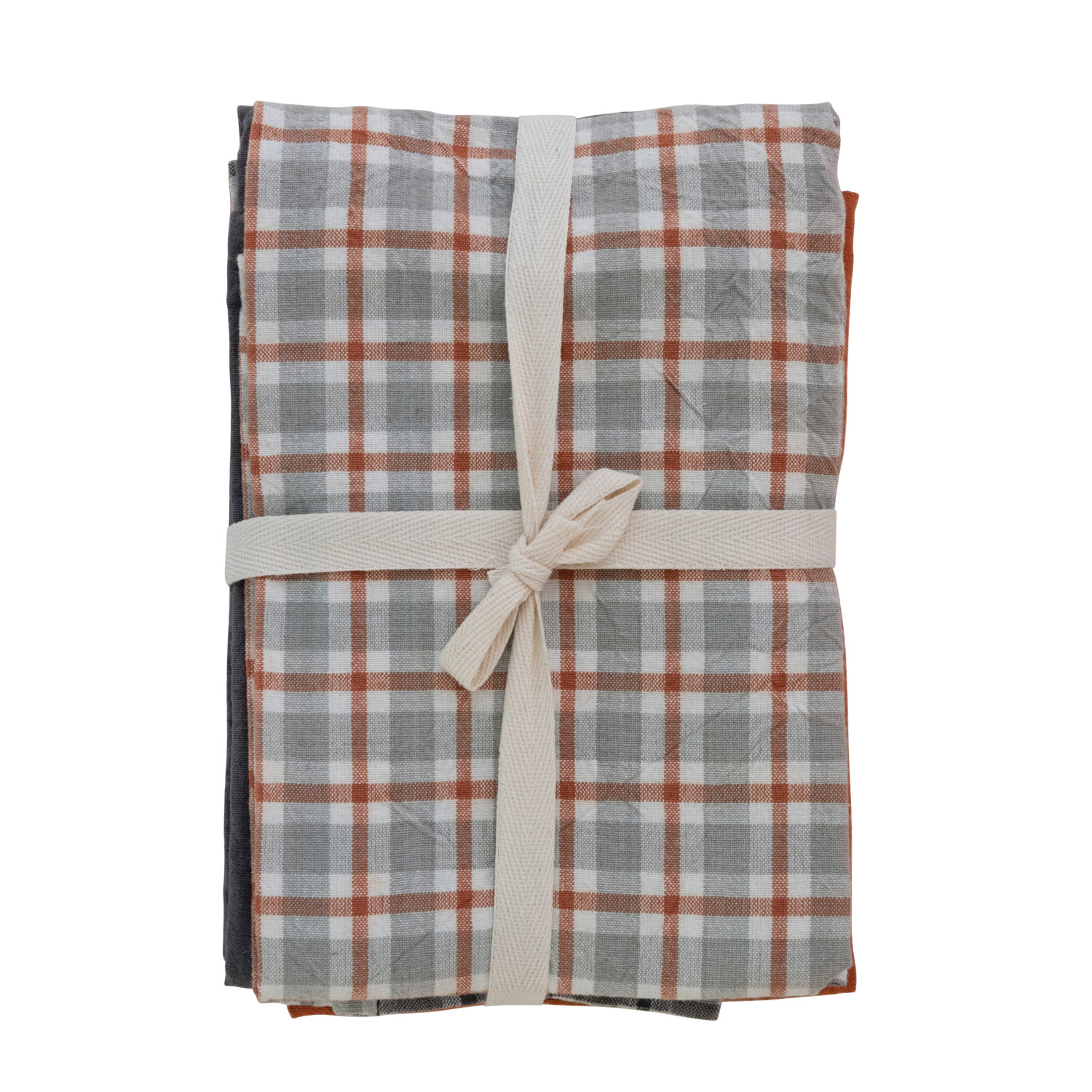 Catalog Name: 28"L x 18"W Cotton Tea Towels, Multi Color, Set of 4 Tied w/ Cotton Tape