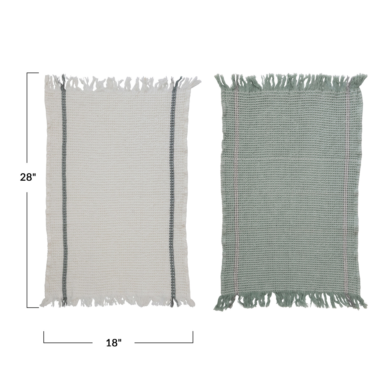 Cotton Waffle Weave Tea Towels w/ Fringe, 2 Colors