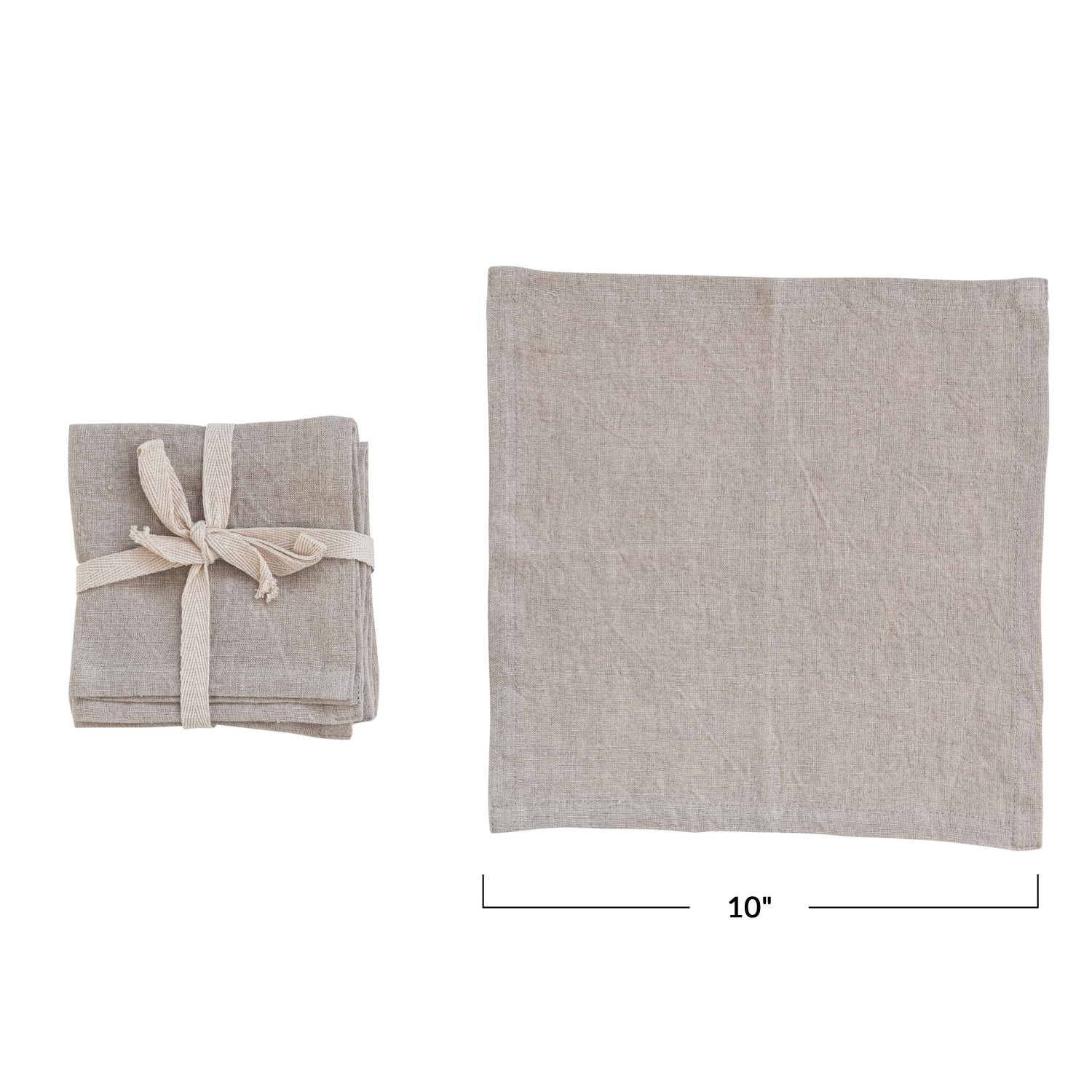 Catalog Name: 10" Square Stonewashed Linen Cocktail Napkins, Natural, Set of 4 Tied w/ Cotton Tape