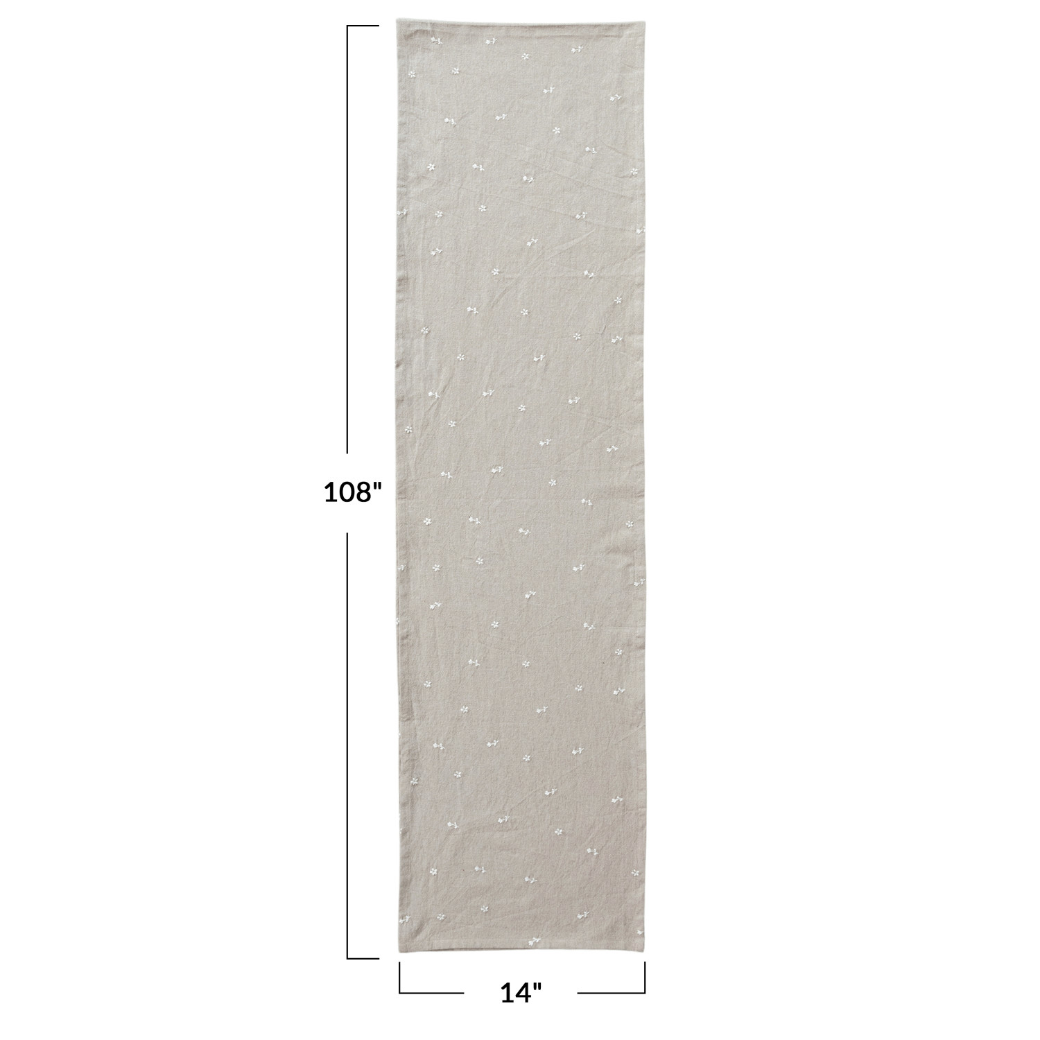 Catalog Name: 108"L x 14"W Cotton Table Runner w/ Embroidered Flowers, Natural & White