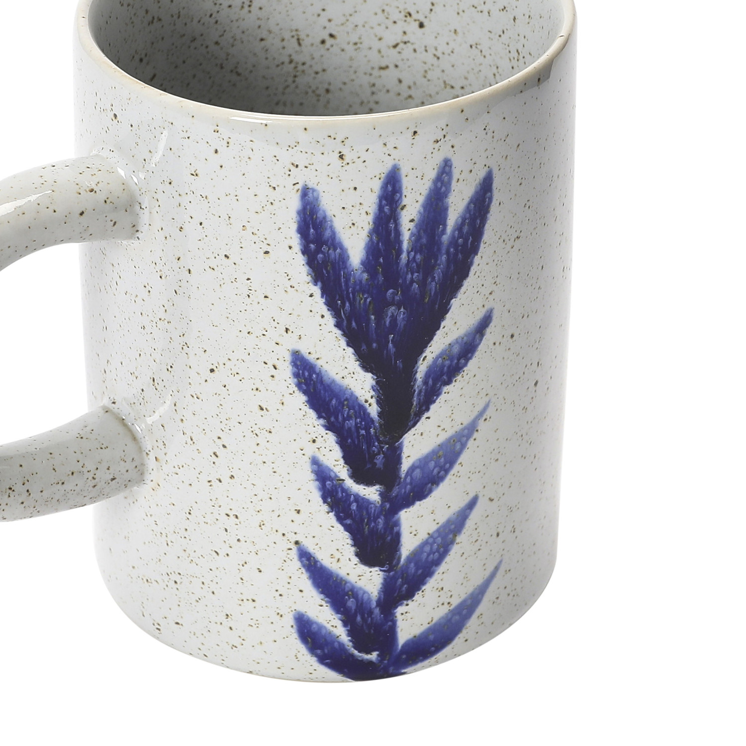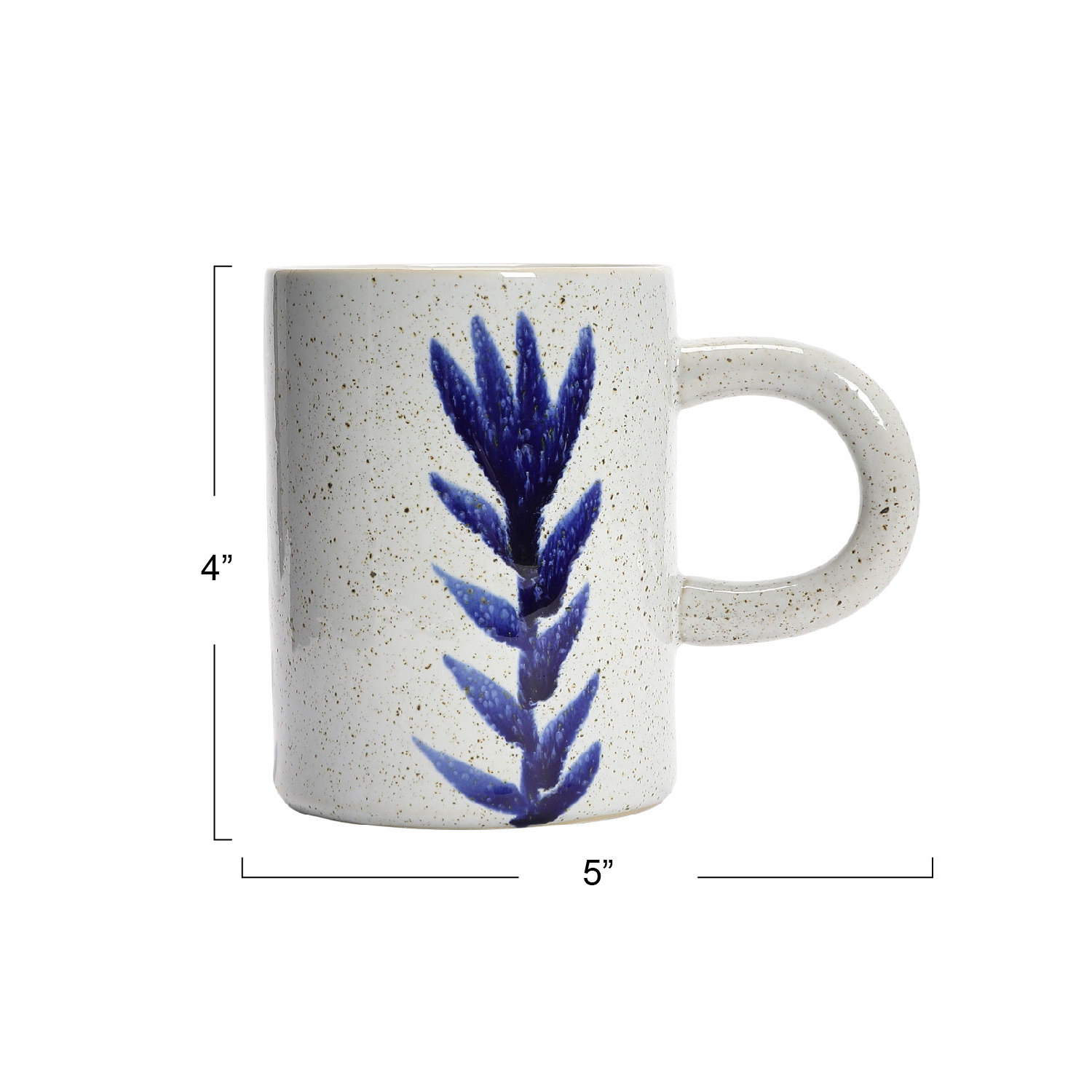 Catalog Name: 3-1/4" Round x 4-1/4"H 12 oz. Hand-Painted Stoneware Mug w/ Flower, Antique White & Blue