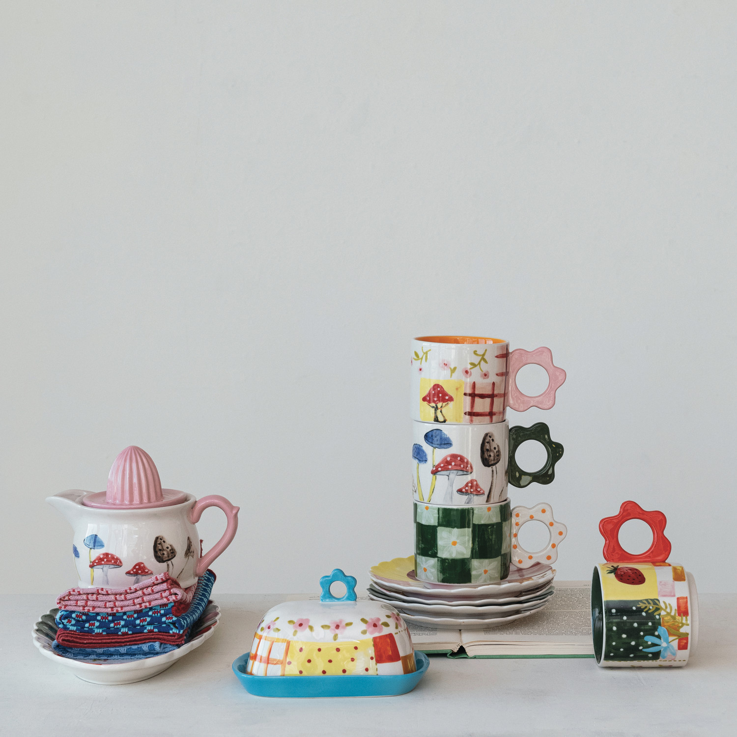 15 oz. Hand-Painted Stoneware Mug w/ Flower Shaped Handle, 4 Styles