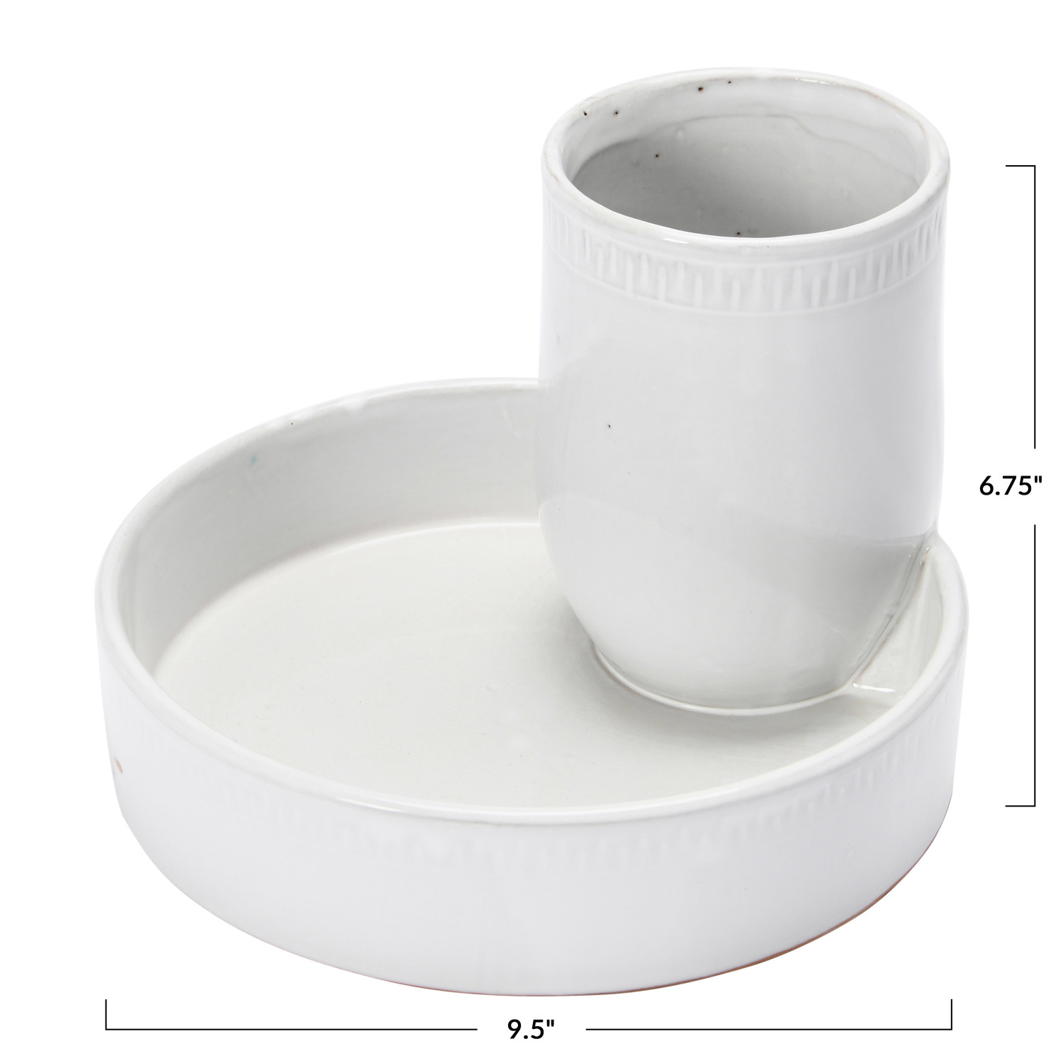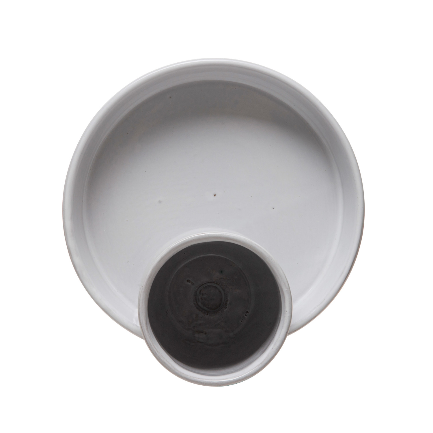 Catalog Name: 9-1/2" Round x 6-3/4"H Terra-cotta Tray w/ 2 Sections, Reactive Glaze, White (Each One Will Vary)