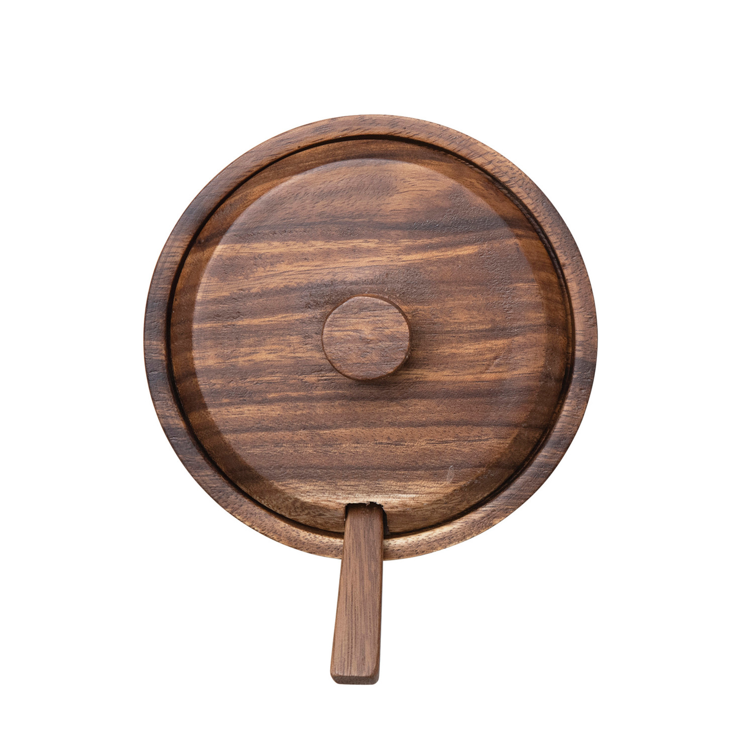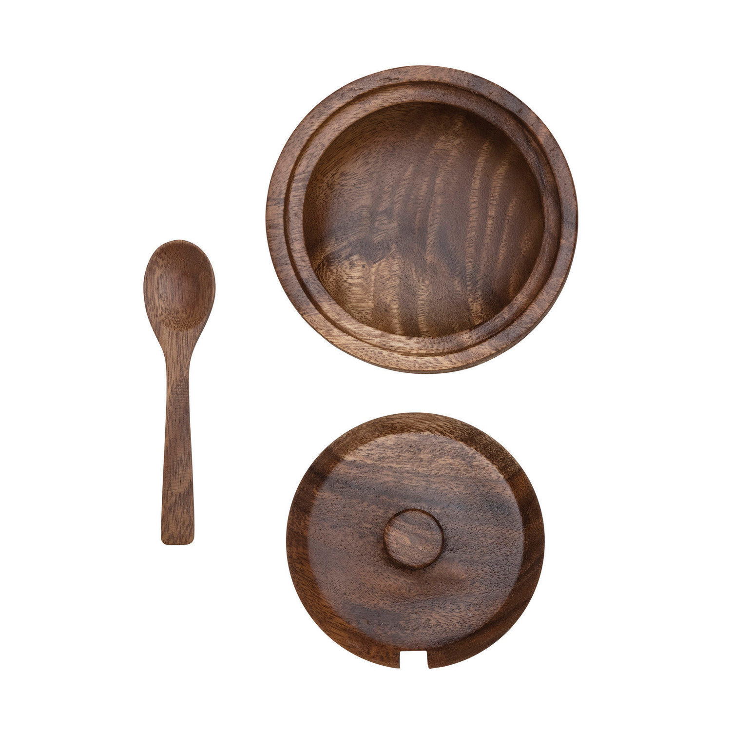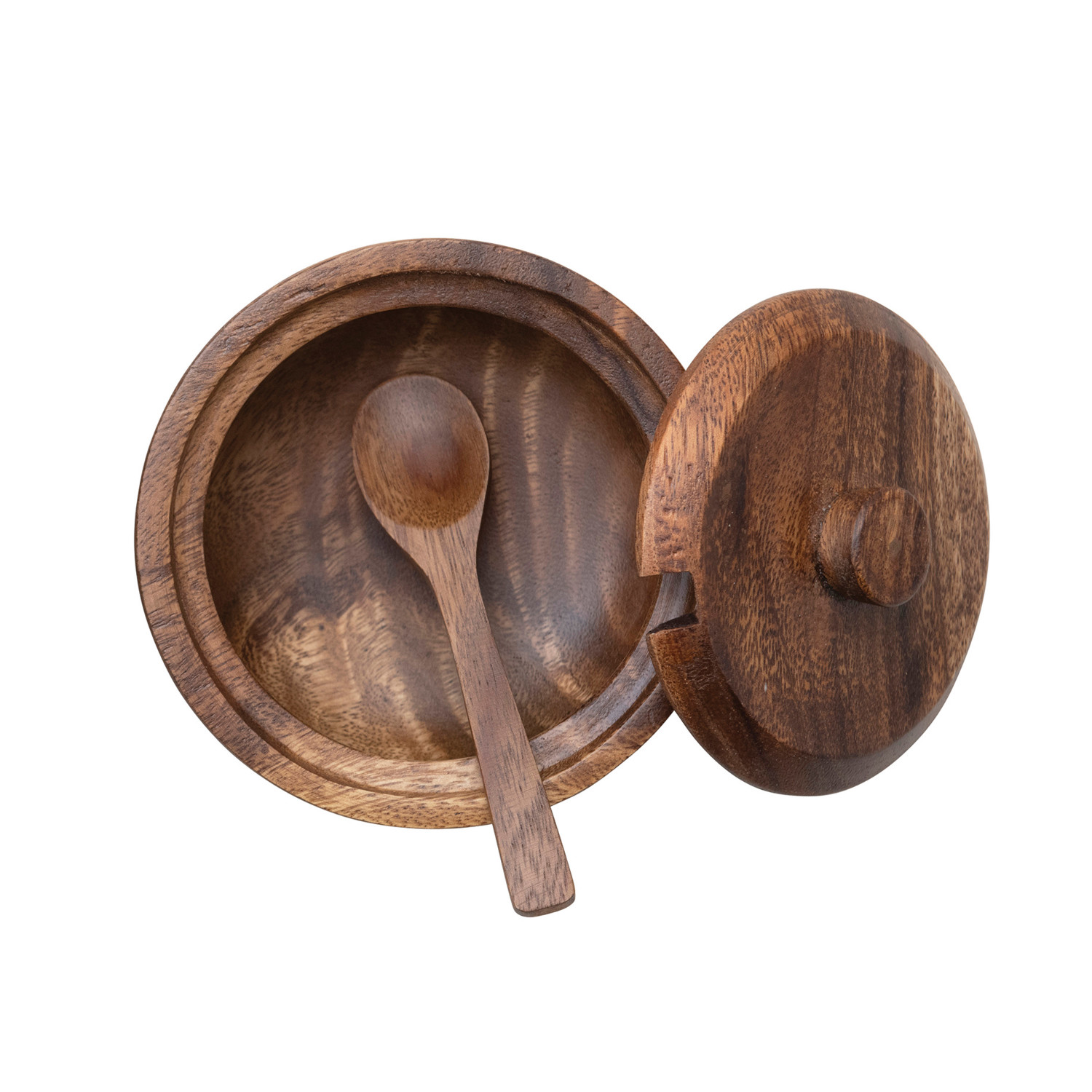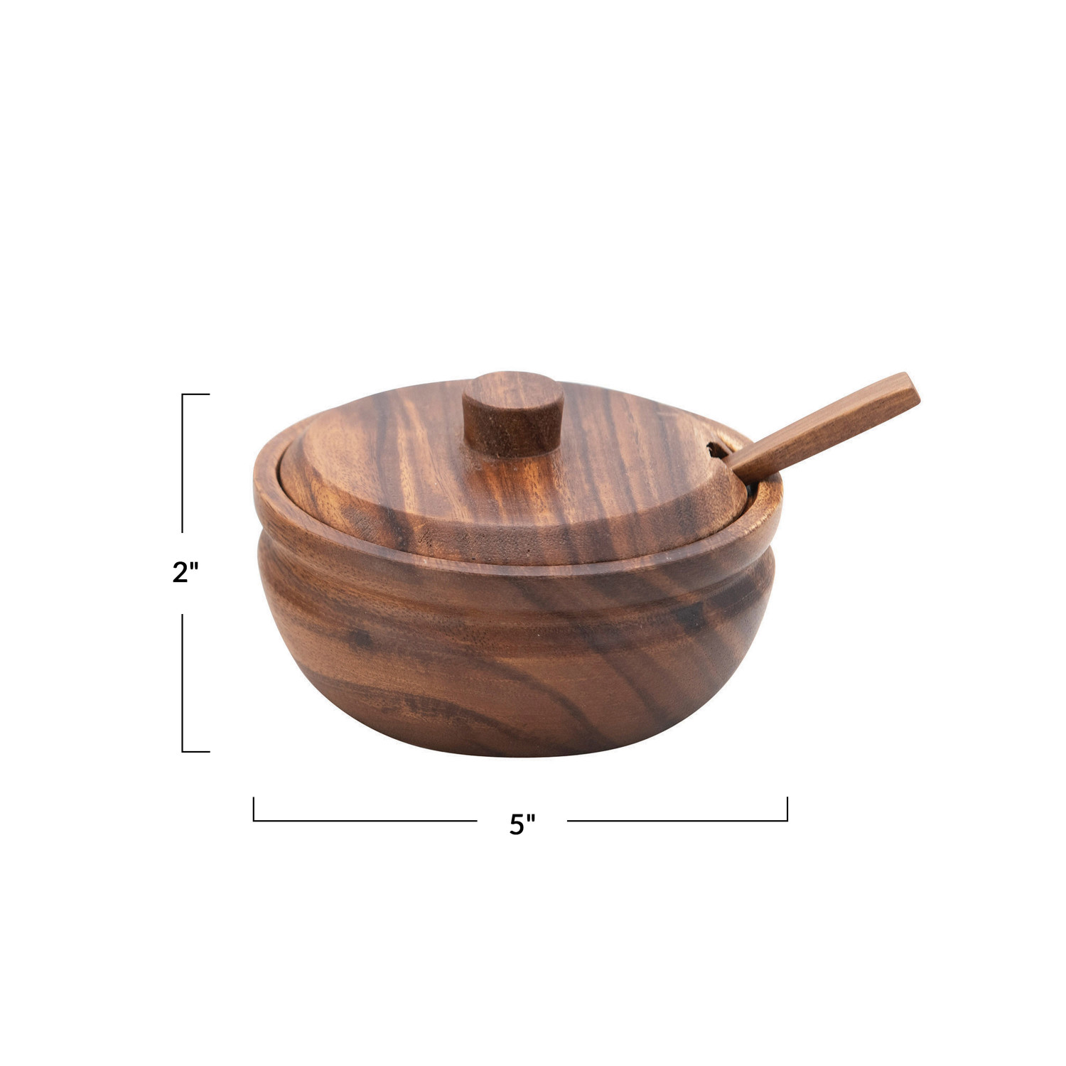 Acacia Wood Covered Bowl with Spoon, Set of 2