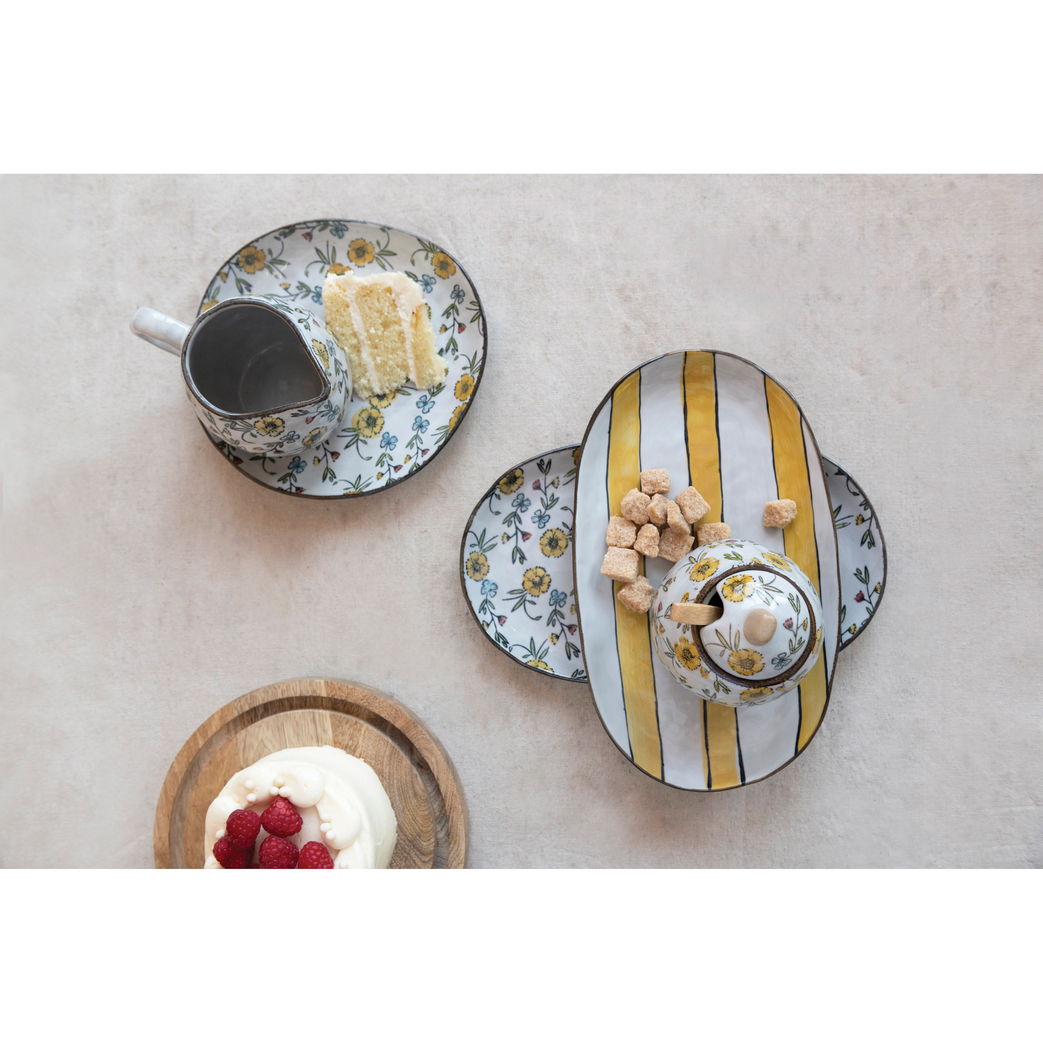 Hand-Painted Stoneware Platter with Floral/Striped Pattern