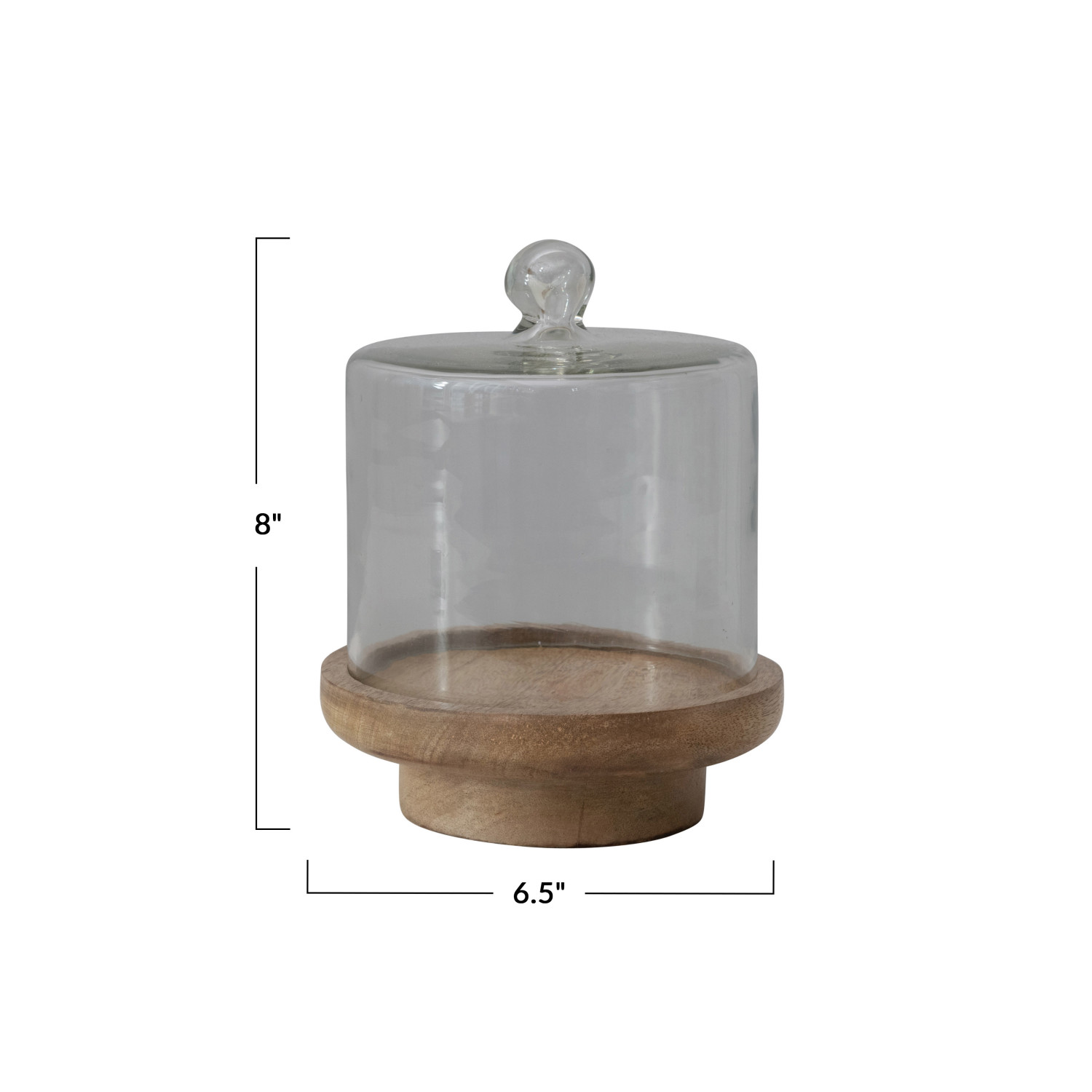 Catalog Name: 6-1/2" Round x 8"H Glass Cloche w/ Footed Mango Wood Base, Natural, Set of 2