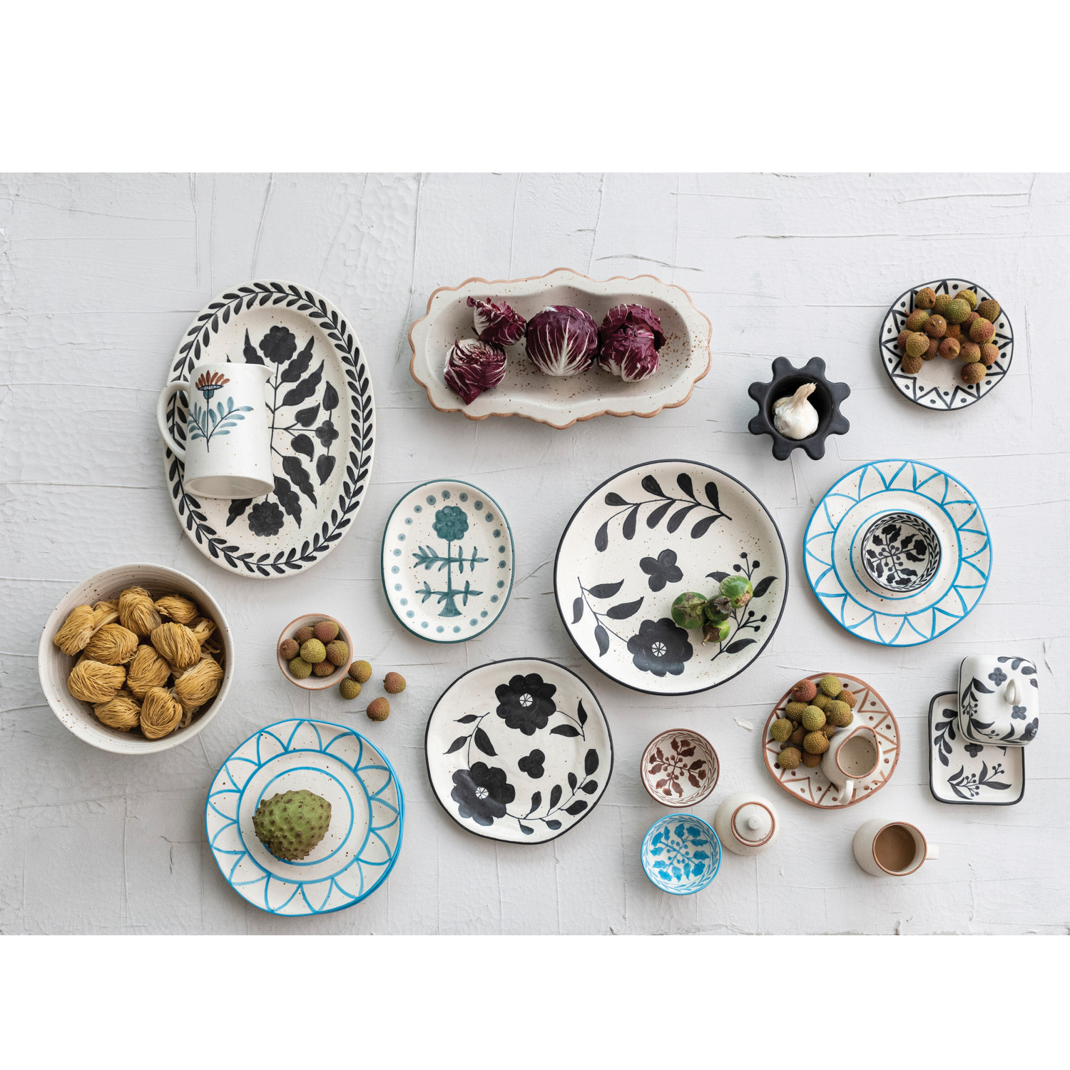 Our thoughtfully crafted collection of serve ware showcases an expansive selection of natural materials and artisanal silhouettes that are all intentionally designed for the modern host. Elevate gatherings of friends and family with an offering of stylishly versatile pieces including serving bowls, pitchers, platters, crocks, ladles, salt and pepper shakers, pinch pots, tiered trays, creamers, appetizer boards, serving trays, so much more. Choose from a wide array of materials from marble to wood, and styles from rustic and modern to farmhouse and glam. Curate a dazzlingly elegant display for a dinner party, or simply add a touch of style to daily rituals with a piece that is sure to impress. This cottage-inspired stoneware pitcher features a masterfully hand-painted floral design and a speckled glaze. This piece is food safe. Dishwasher safe. Made from stoneware.