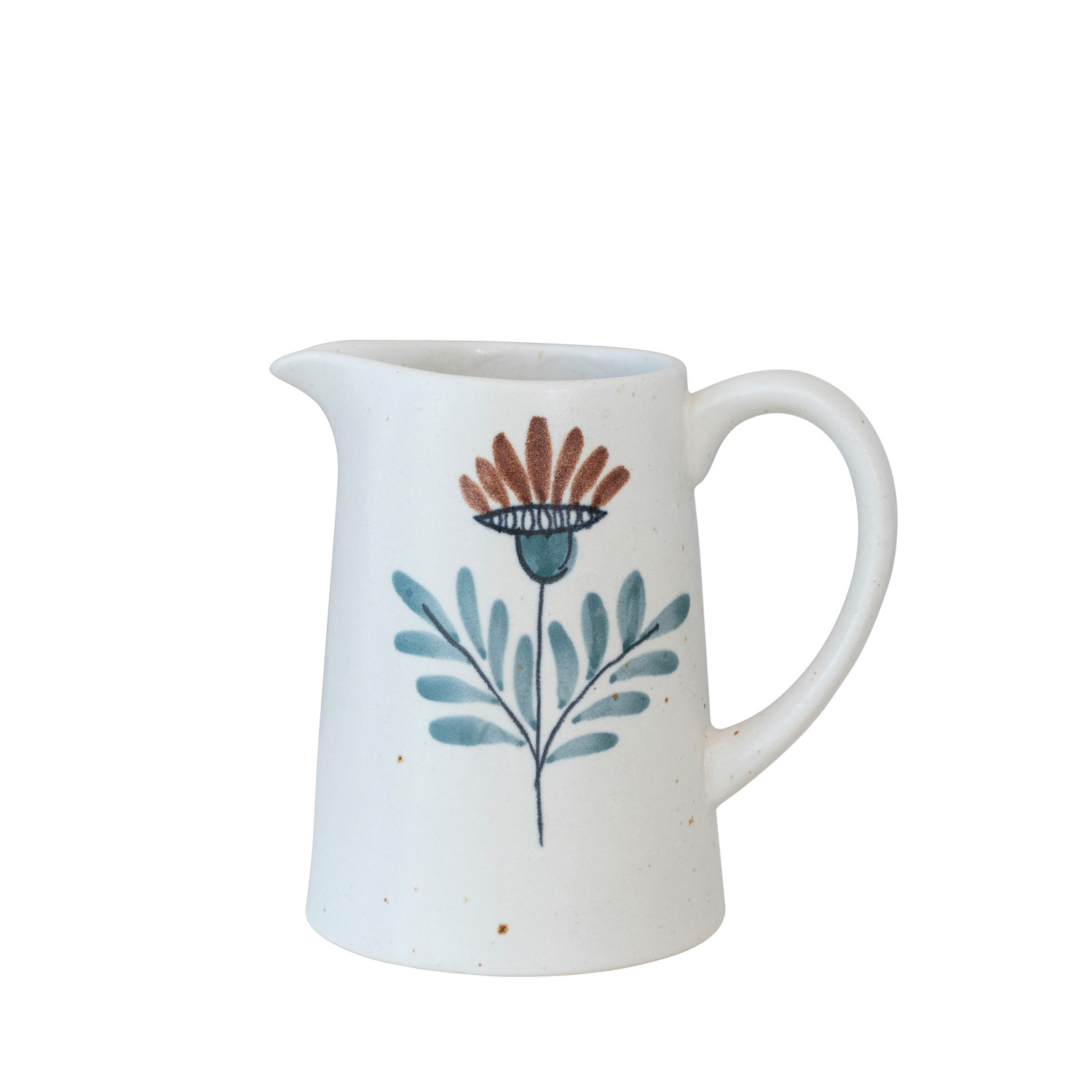 Catalog Name: 5"L x 7-1/2"W x 7"H 48 oz. Hand-Painted Stoneware Pitcher w/ Flower, Multi Color Speckled