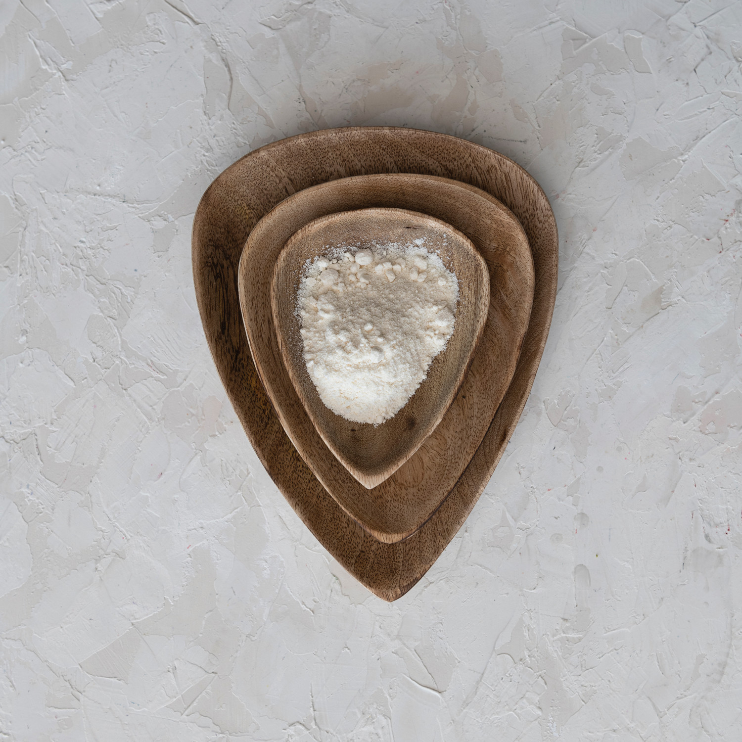 Mango Wood Triangular Trays/Plates, Natural, Set of 3