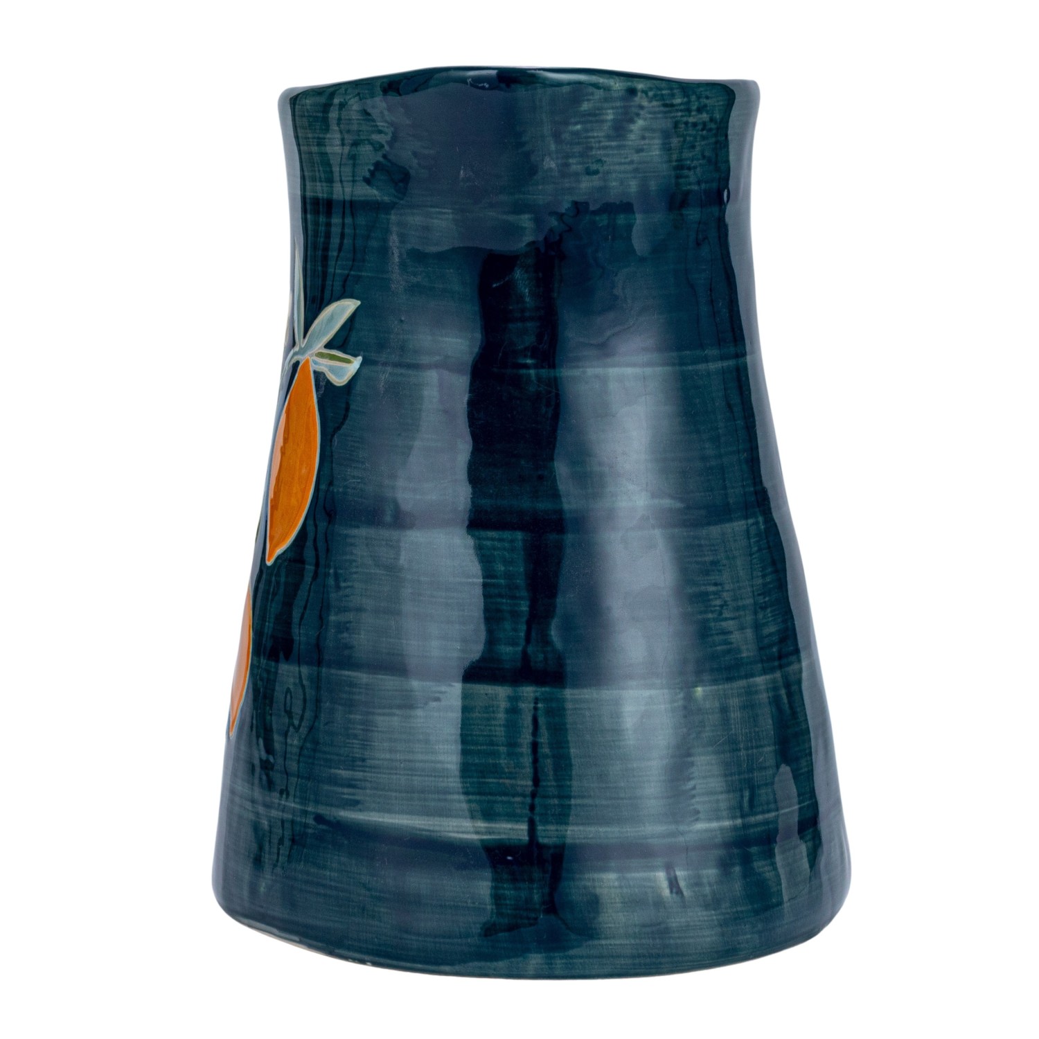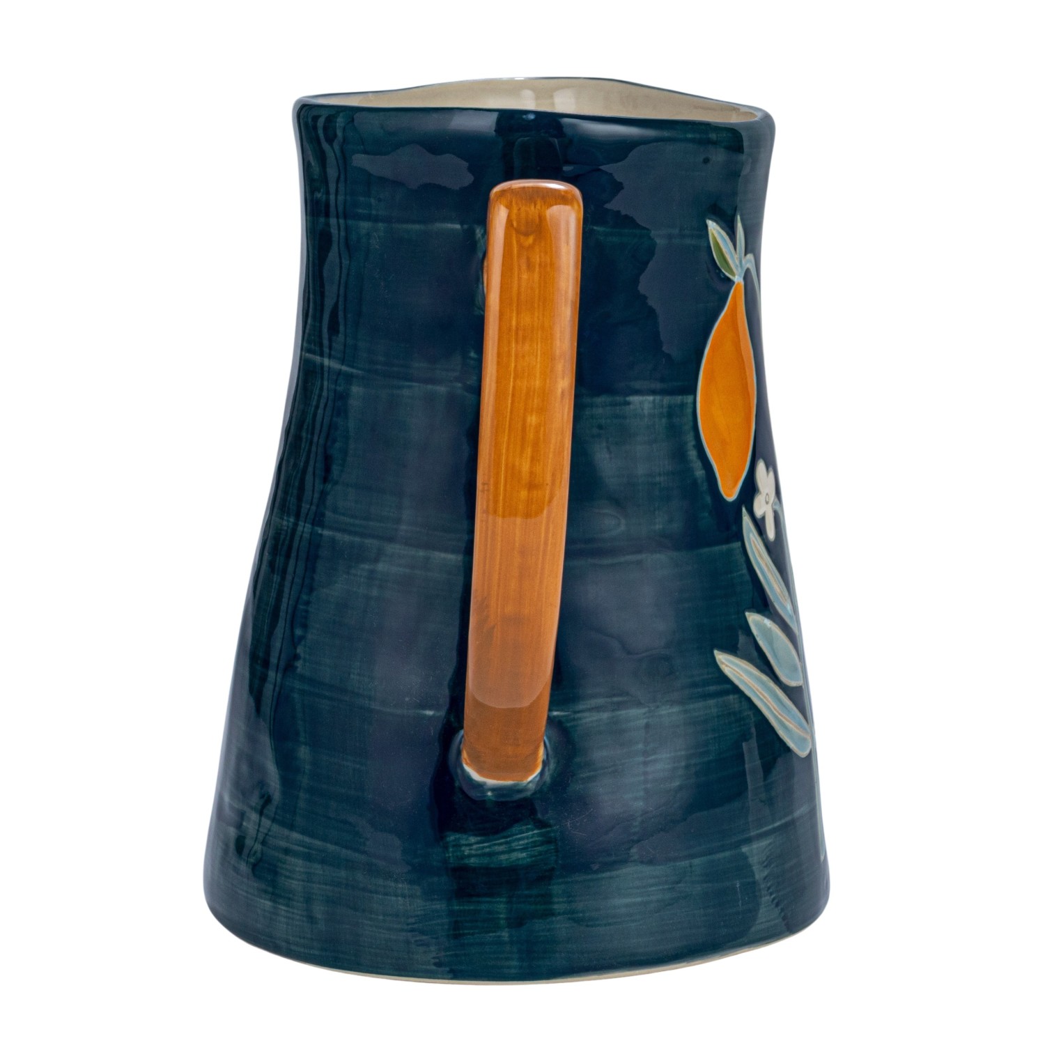 Catalog Name: 9"L x 7-1/4"W x 9-1/2"H 3 Quart Hand-Painted Stoneware Pitcher w/ Wax Relief Flowers & Lemons, Multi Color ©