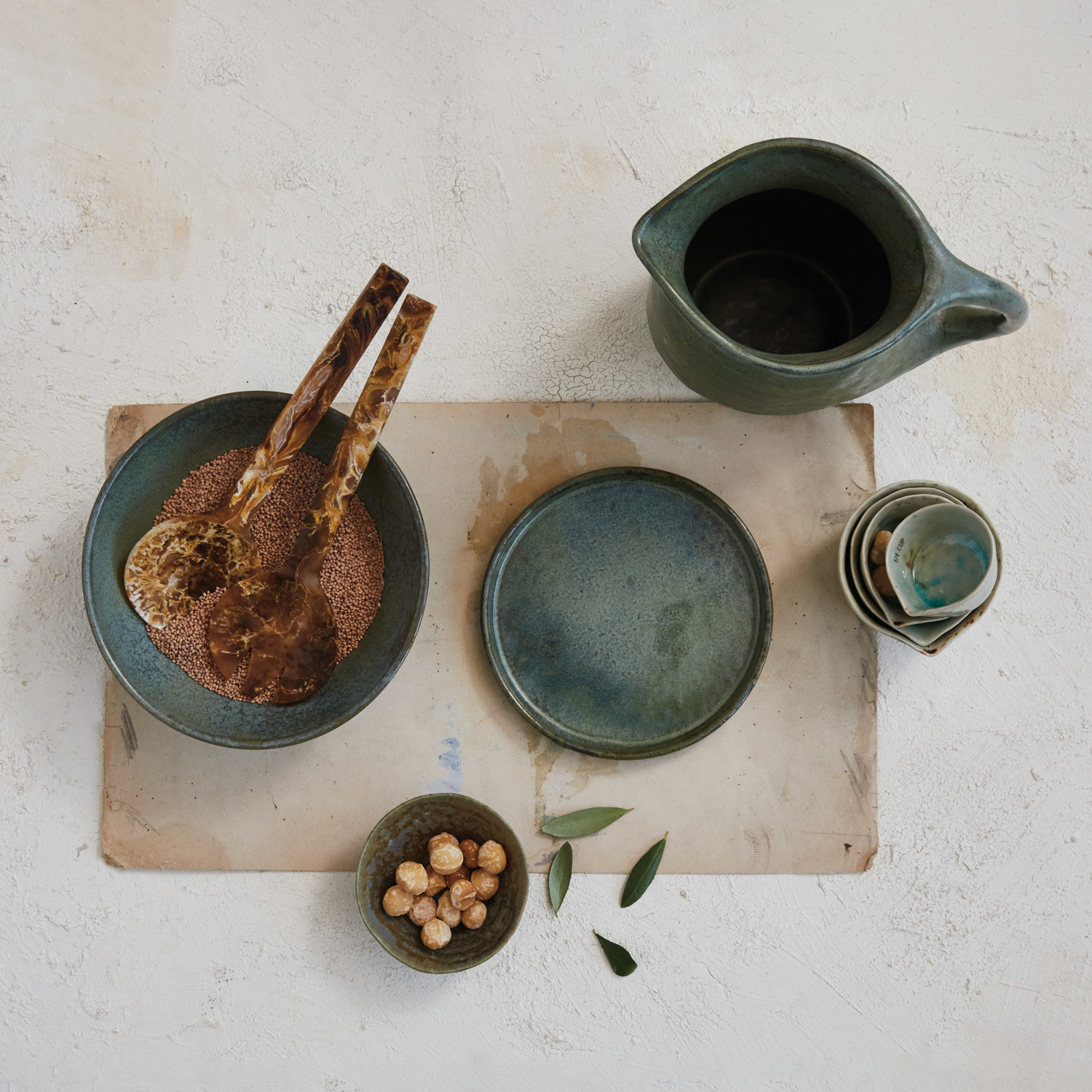 Catalog Name: 9"L x 5"W x 8-1/2"H 2-1/2 Quart Stoneware Pitcher, Reactive Glaze, Matte Teal (Each One Will Vary)
