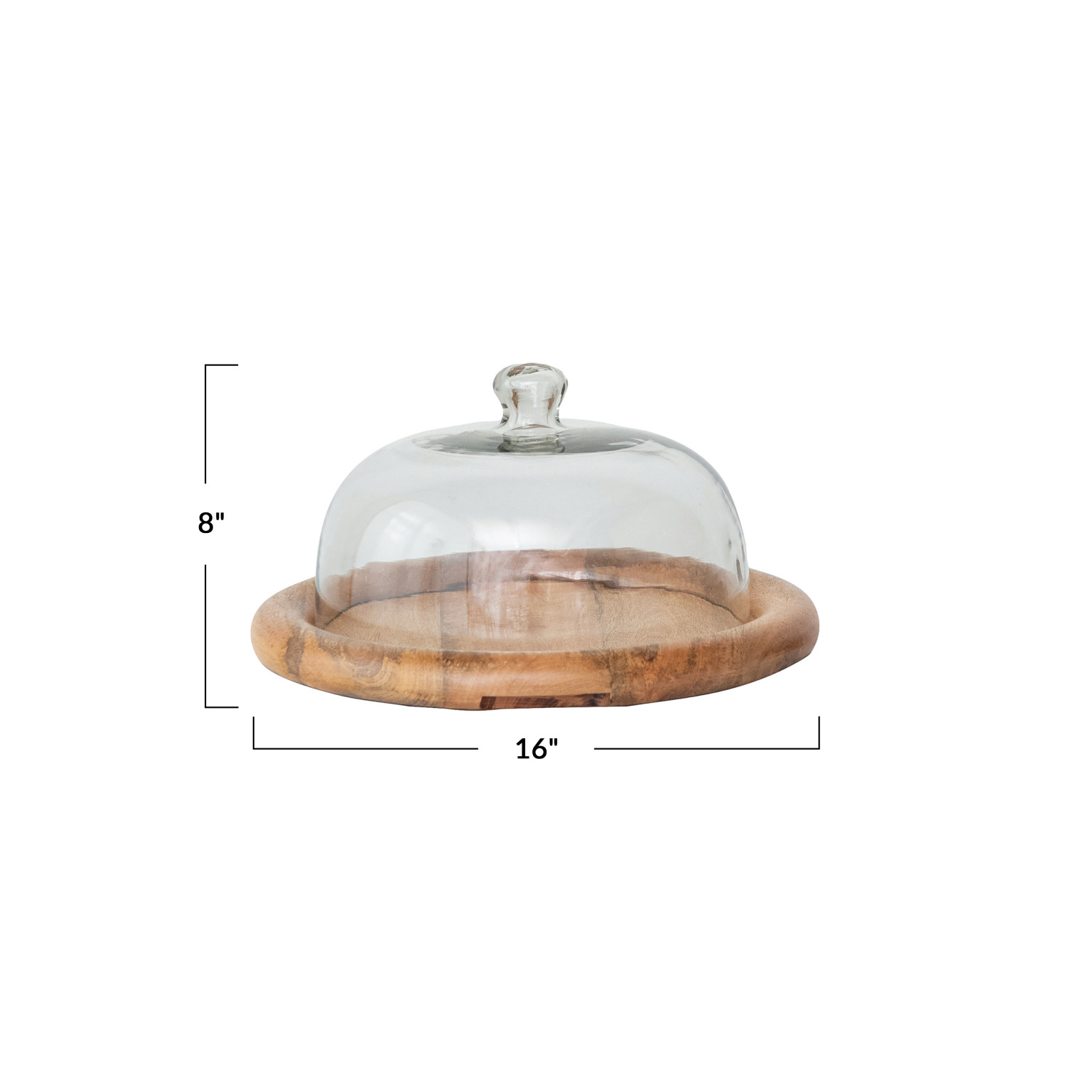 Catalog Name: 16" Round x 8"H Glass Cloche w/ Mango Wood Base, Natural, Set of 2