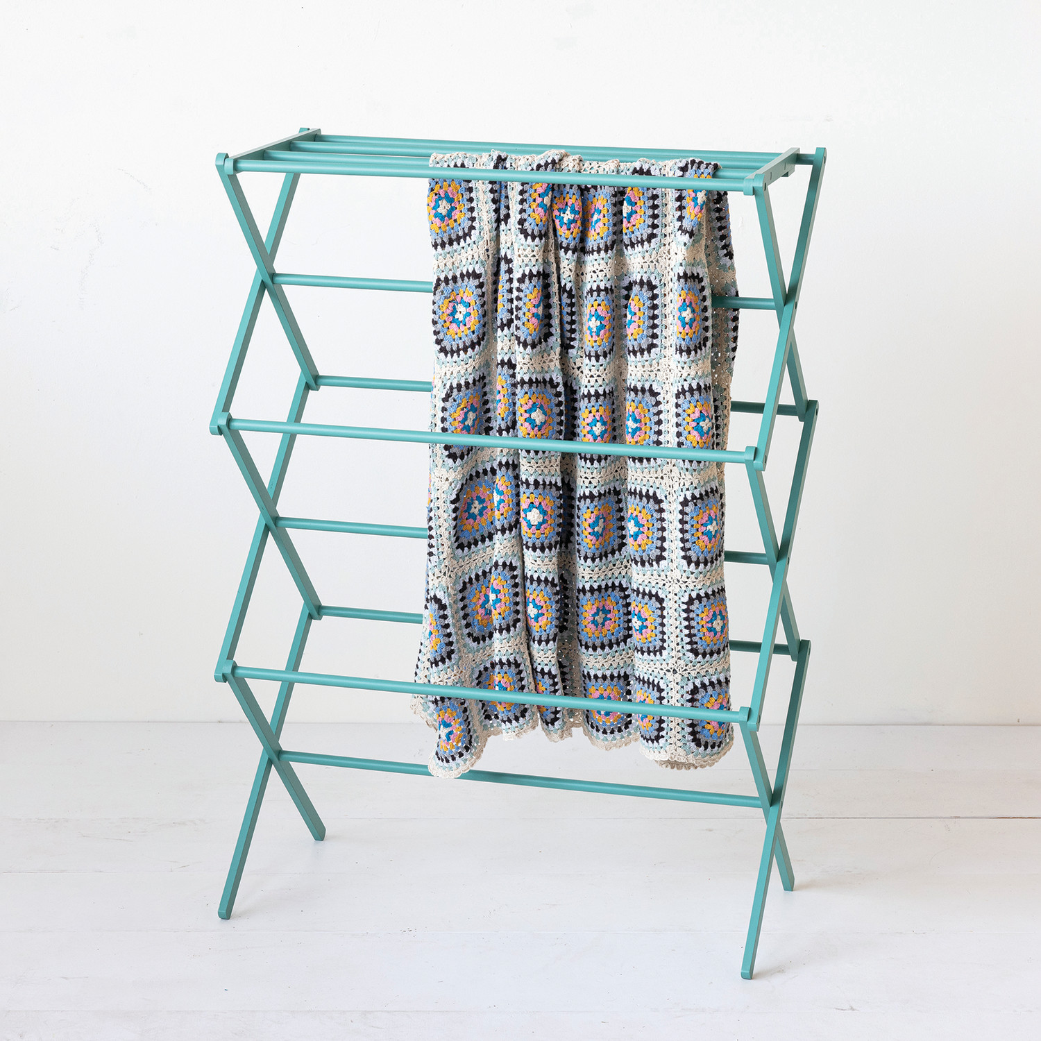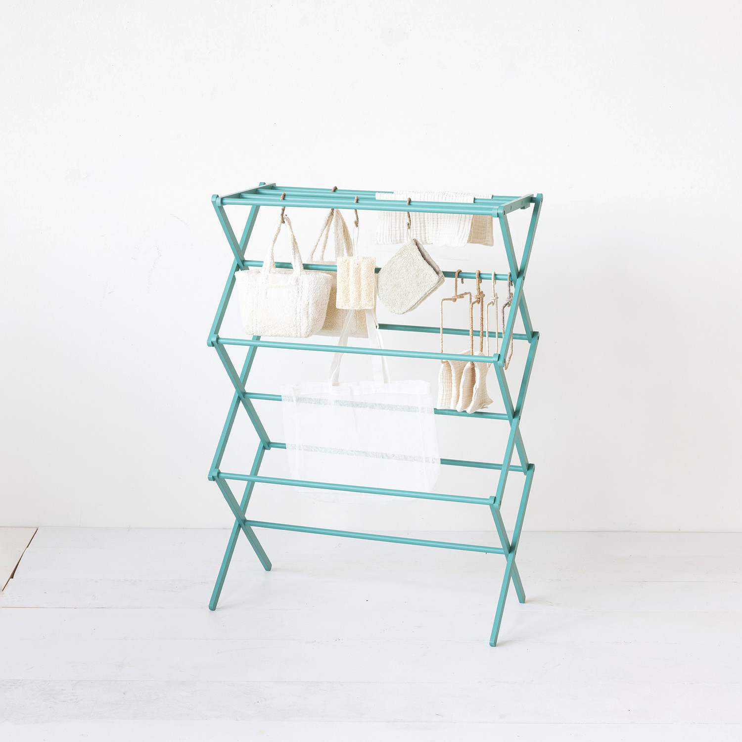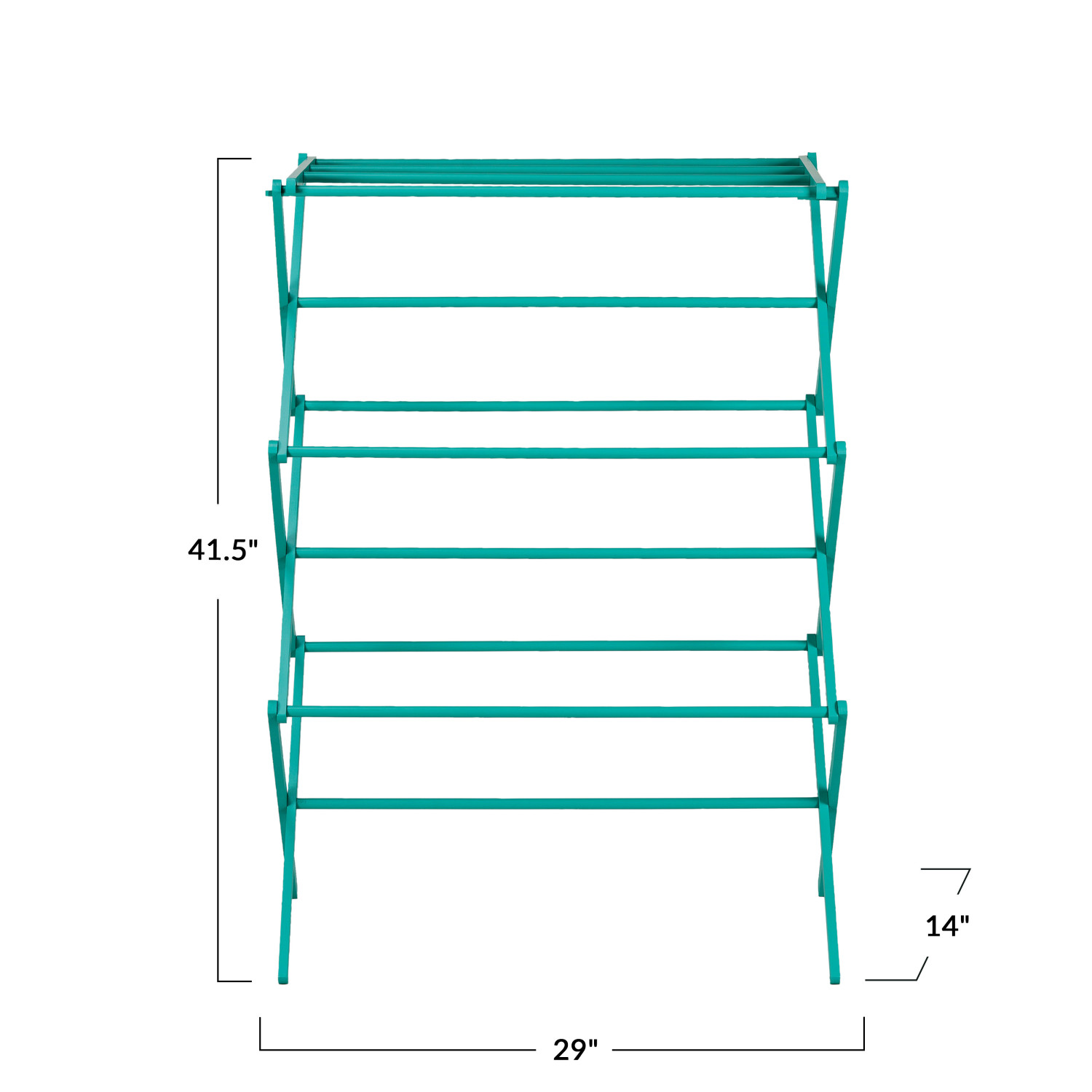Catalog Name: 29"L x 14"W x 41-1/2"H Bamboo Clothes Drying Rack/Display w/ 11 Rods, Turquoise Color, KD, Truck Ship