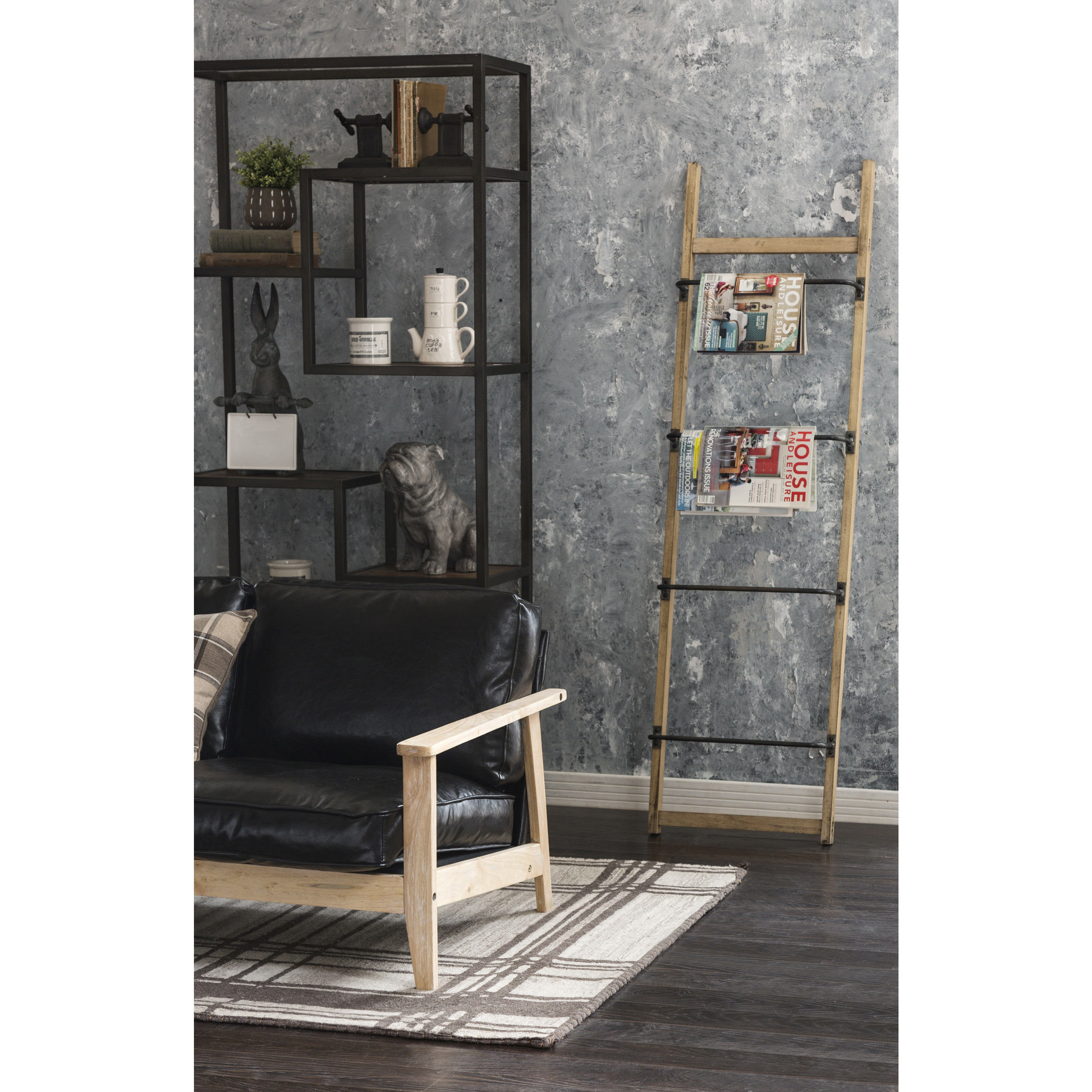 Catalog Name: 19-3/4"W x 5-1/4"D x 70-3/4"H Wood & Metal Wall Rack w/ 4 Bars, Natural & Gunmetal Finish, KD
