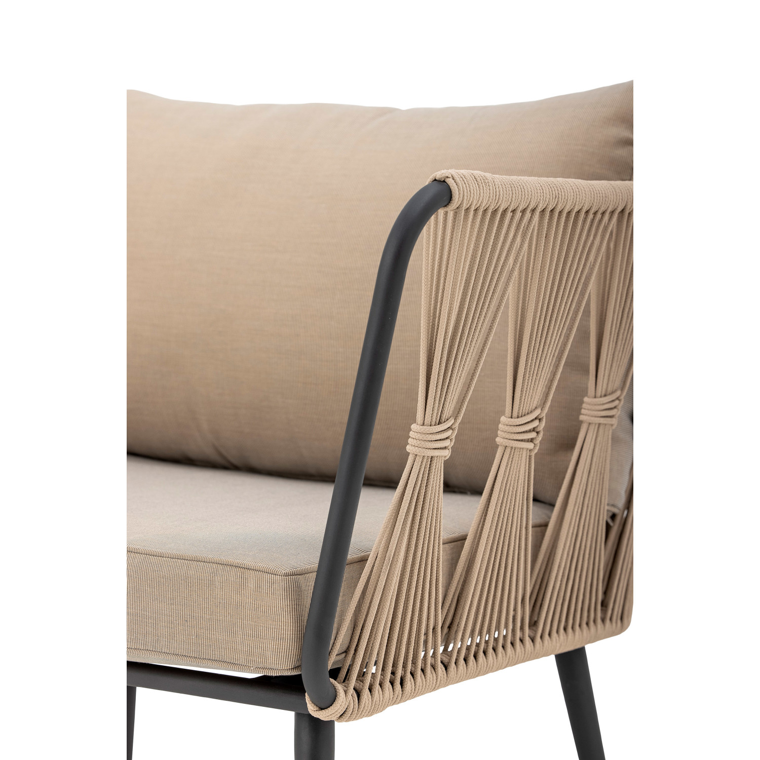 Catalog Name: 34"W x 28"D x 28"H Metal & Woven Rope Indoor/Outdoor Chair w/ Fabric Cushions & Removable Covers, Black & Tan Color, KD, Truck Ship