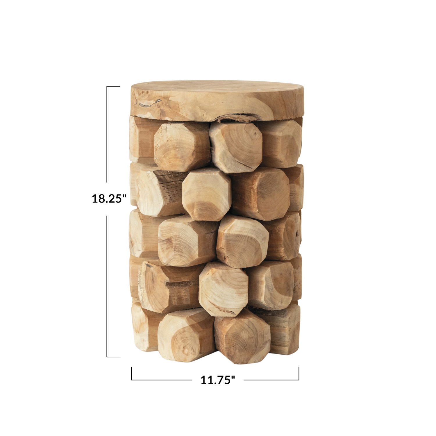 Catalog Name: 11-3/4" Round x 18-1/4"H Teakwood Root Table/Stool, Natural, Truck Ship