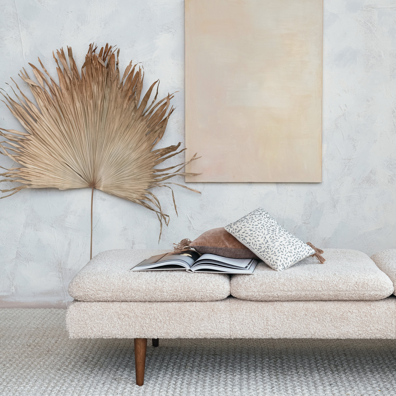 Bouclé Fabric Upholstered Daybed w/ Rubberwood Legs, KD