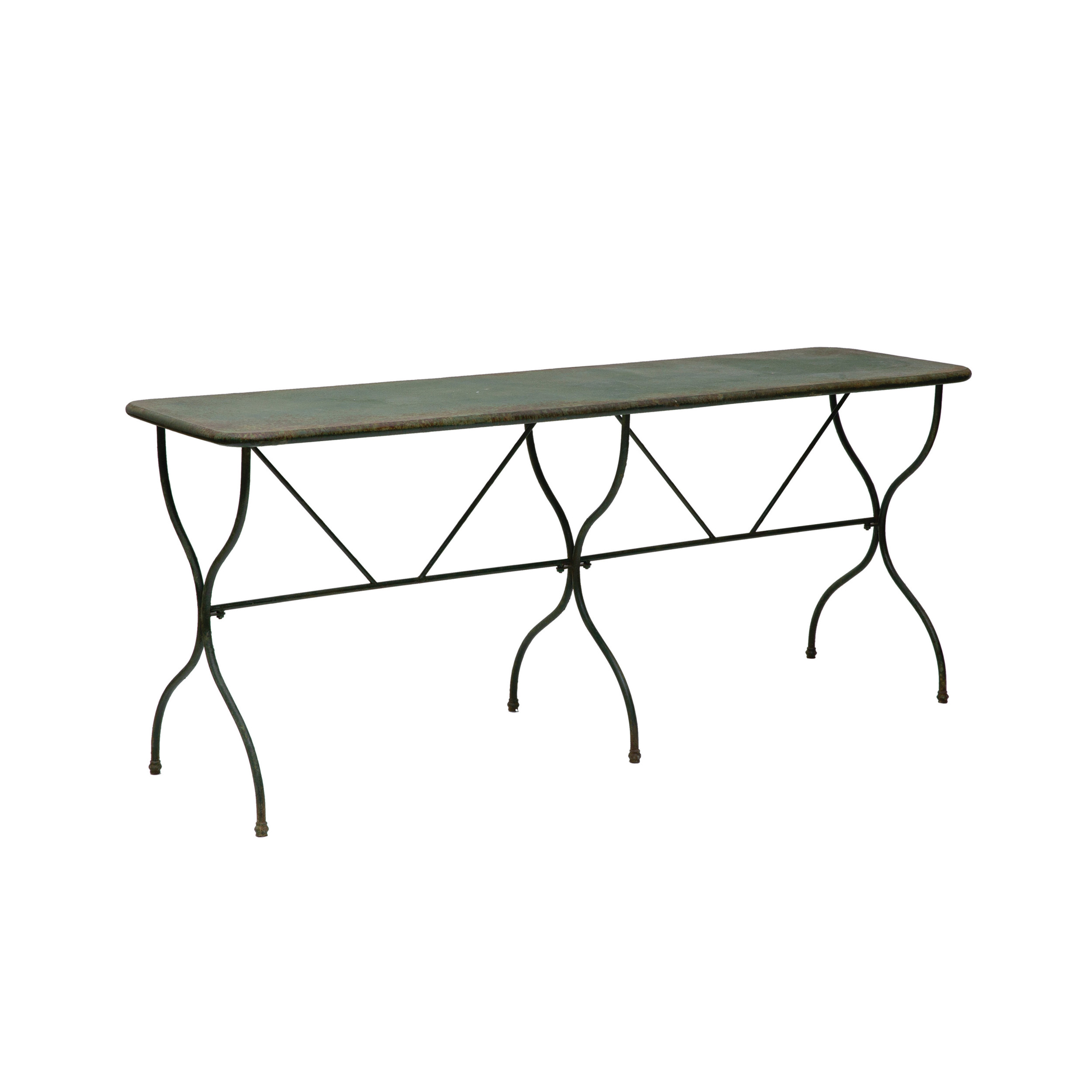 Catalog Name: 72"L x 19-1/2"W x 29-1/2"H Metal Table, Distressed Finish, Green, KD, Truck Ship