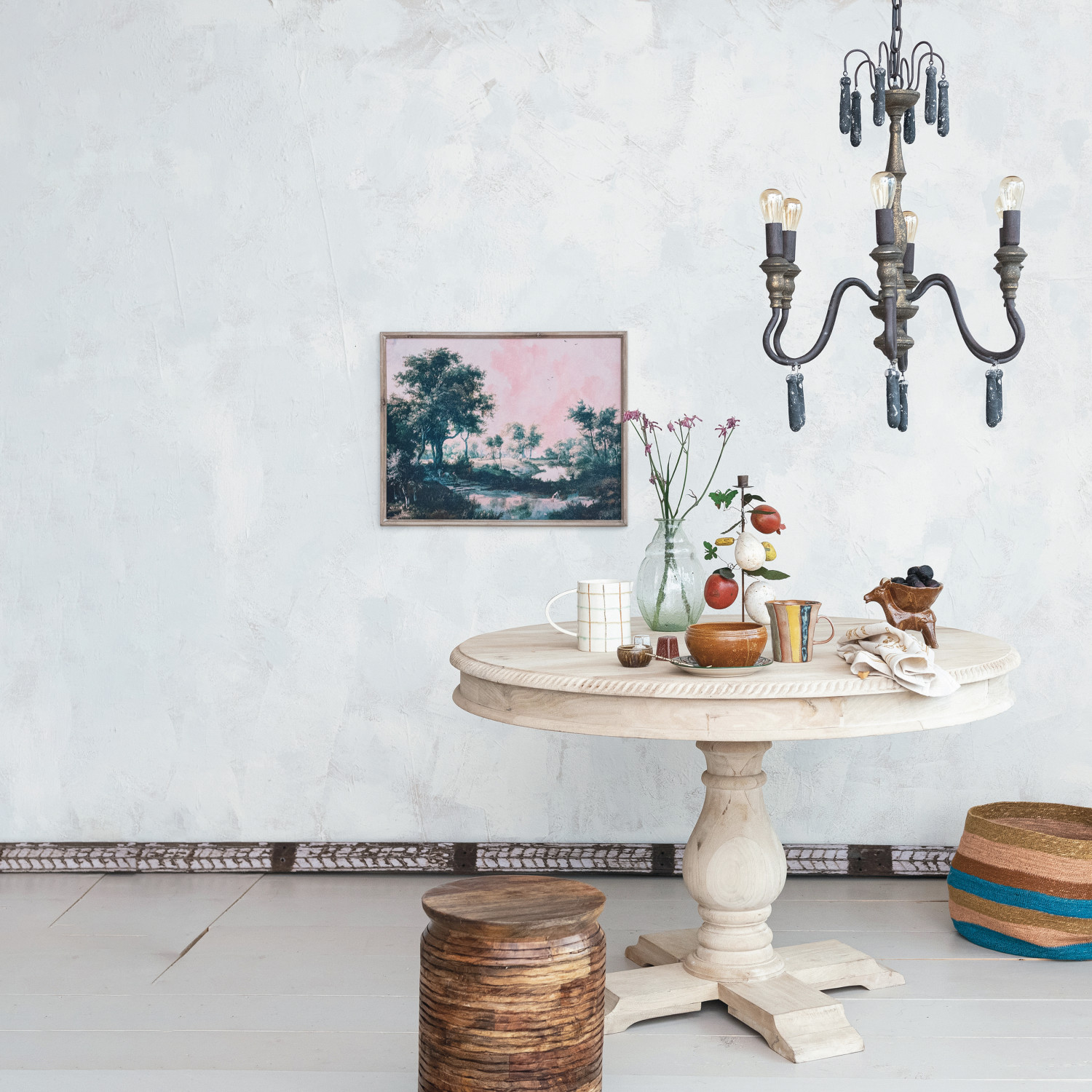 Carved Mango Wood Table, Bleached, KD