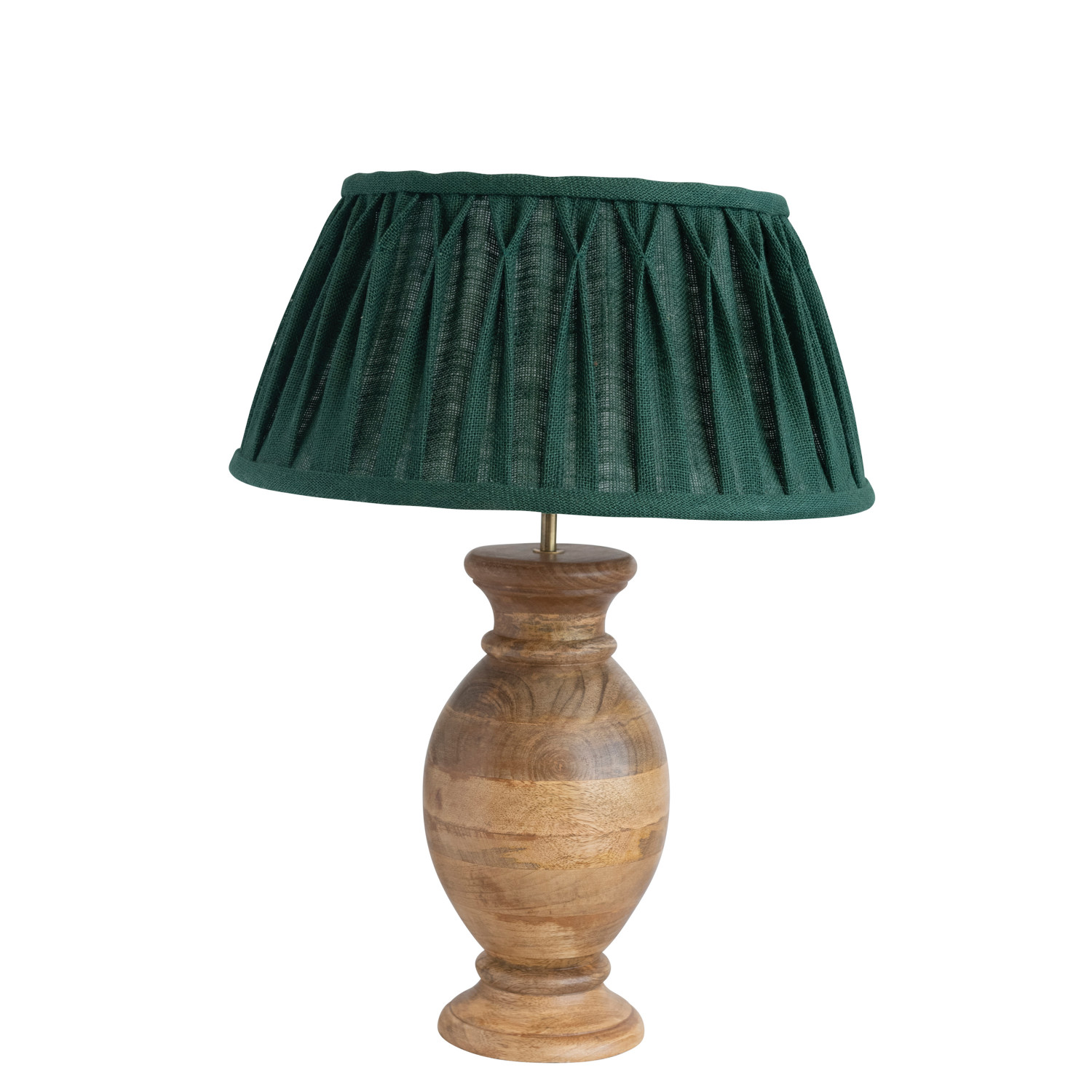 Catalog Name: 17-3/4" Round x 22-1/2"H Mango Wood Table Lamp w/ Pintucked Burlap & Cotton Shade & Inline Switch, Natural & Forest Green