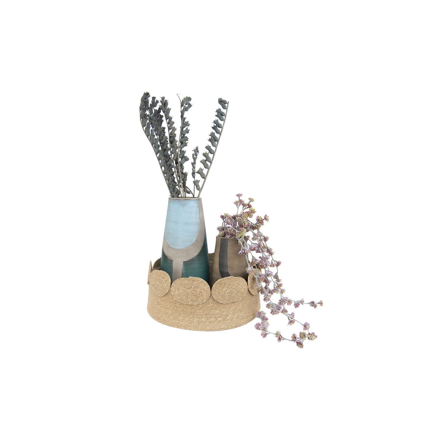 This set of handwoven natural seagrass baskets are beautiful decoration pieces with the appliqued oval accents attached around the rims. Use them for covers over potted plants, crafts or miscellaneous items. If taking a trip, pack several items inside and then use them for a catch-all in the hotel room. Place games or toys inside for the kids and they can easily be accessible for putting the items away when not in use.