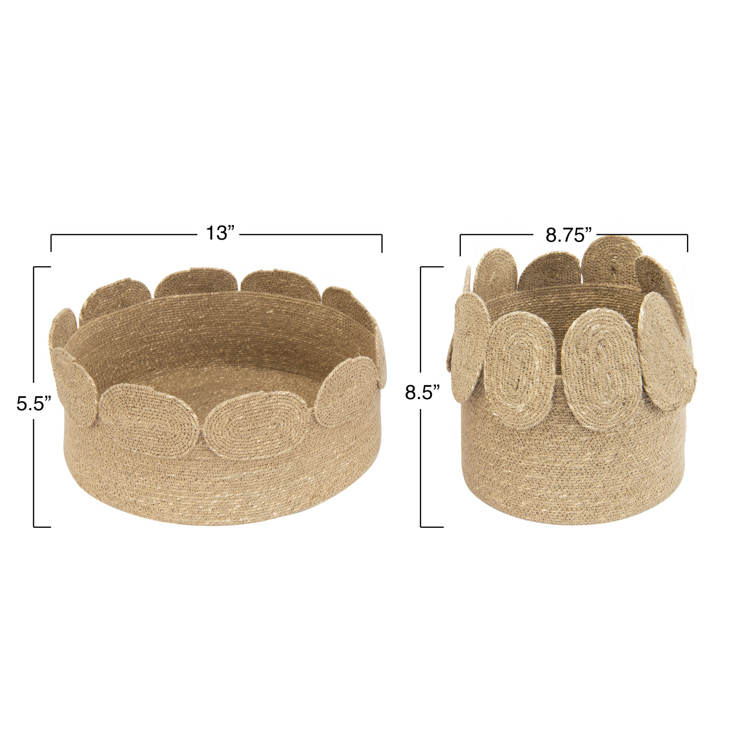 Catalog Name: 13" Round x 5-1/2"H & 9" Round x 9"H Hand-Woven Seagrass Baskets w/ Appliqued Edge, Natural, Set of 2