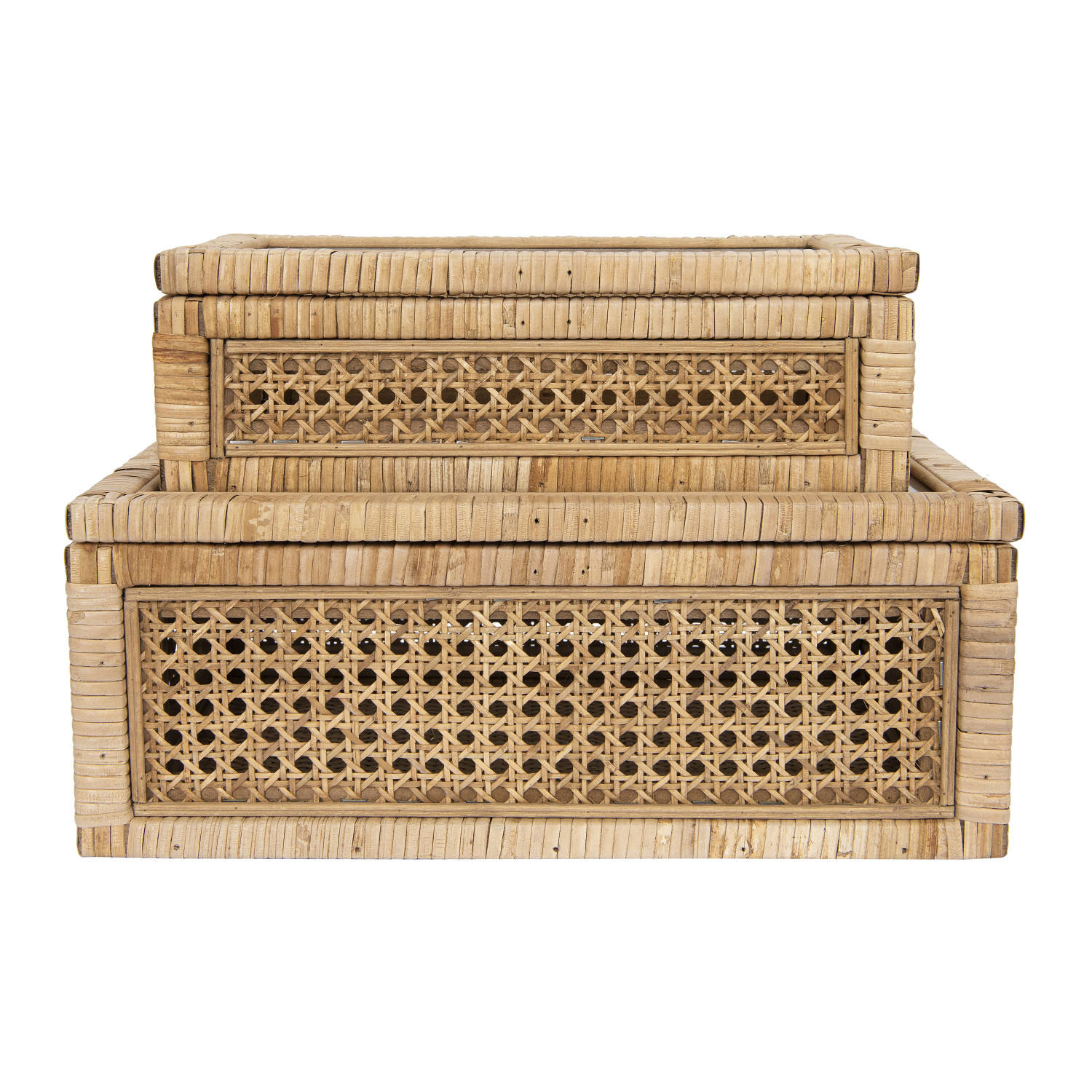 Catalog Name: 14-3/4"L x 9-1/2"W x 5-1/4"H & 12-3/4"L x 6-3/4"W x 3-1/2"H Woven Rattan & Wood Display Boxes w/ Glass Lids, Natural, Set of 2