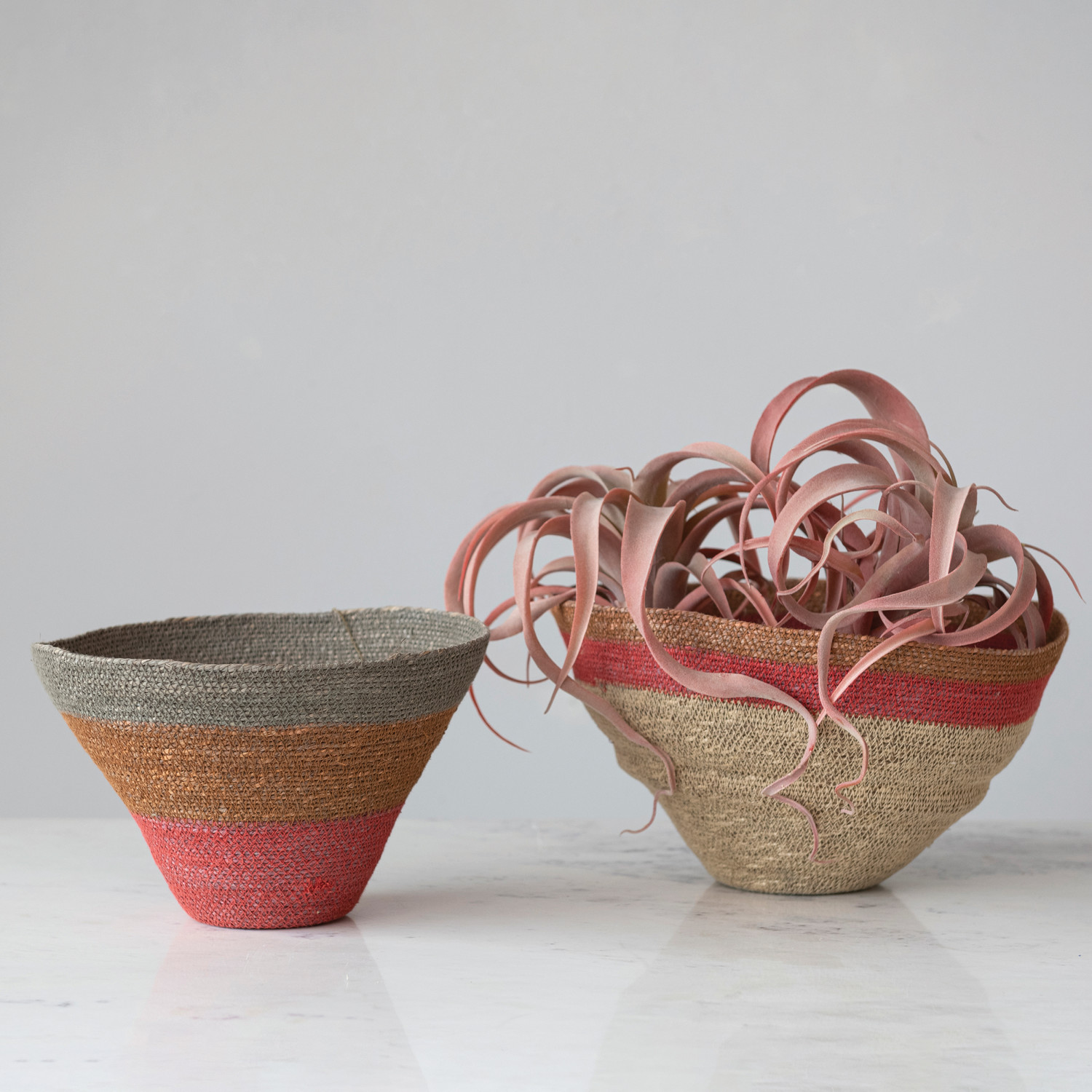 Hand-Woven Seagrass Nesting Baskets, Multi Color, Set of 2