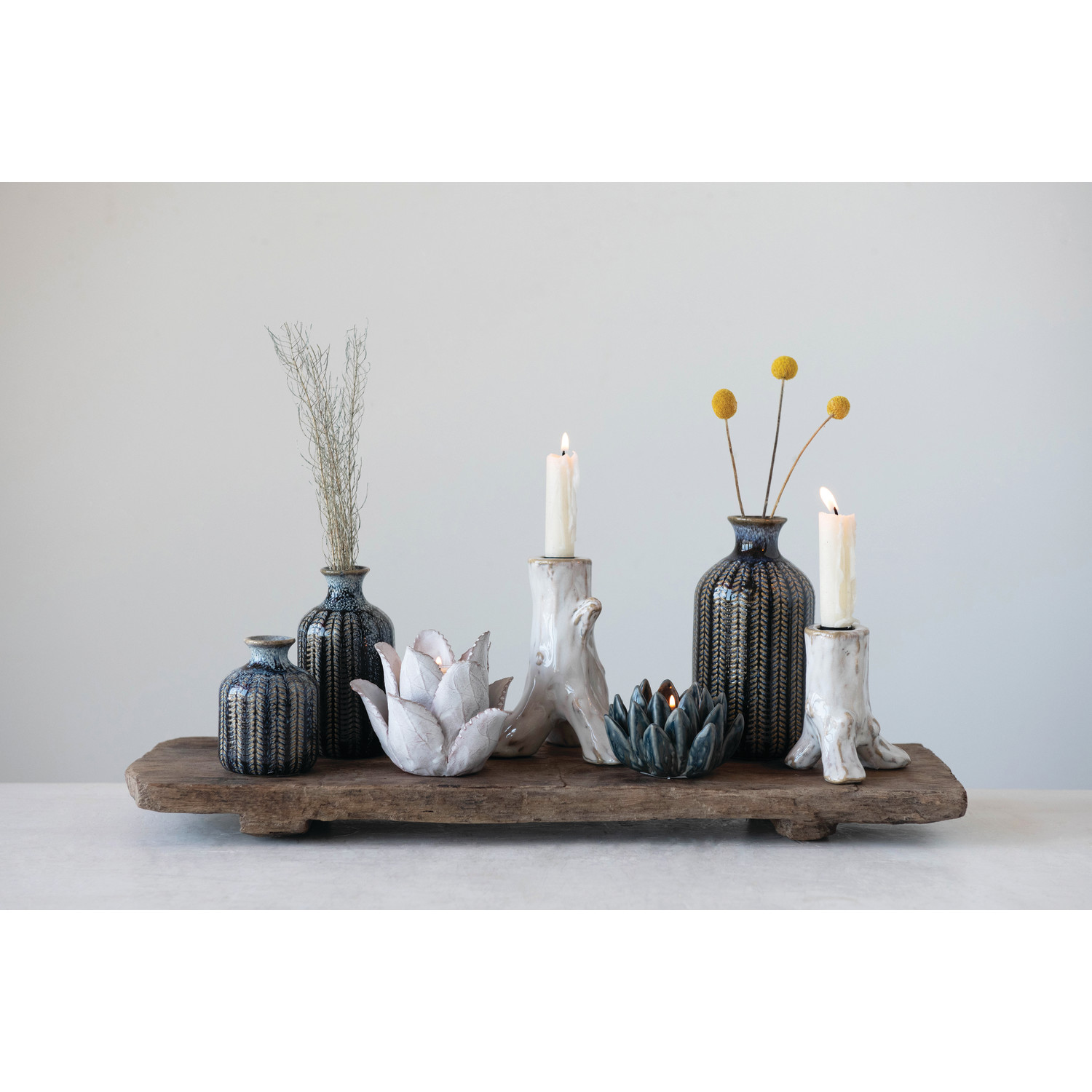 Add warmth to the room decor by lighting a tealight candle in this handmade off-white terracotta candleholder in the shape of a flower. While adding a soothing ambience, it will create a special and relaxed atmosphere. For a cozy room decor, light candles in various areas of the room.