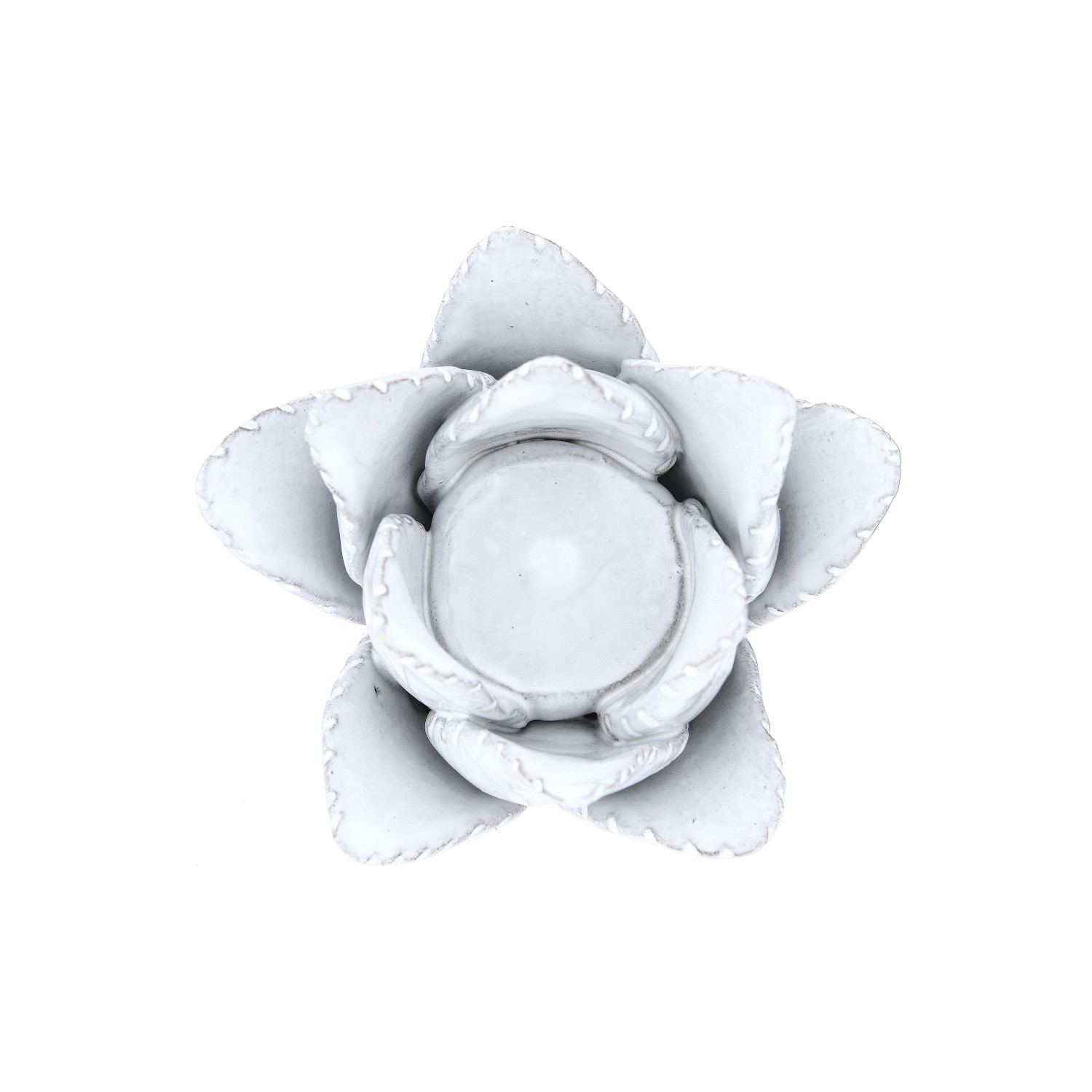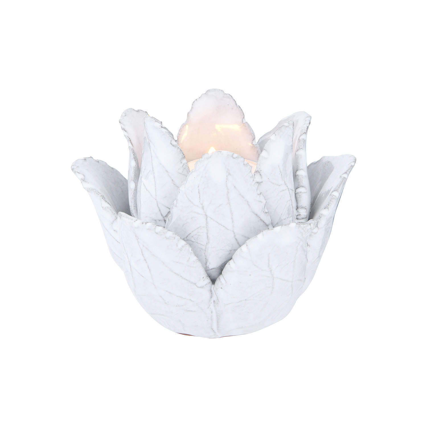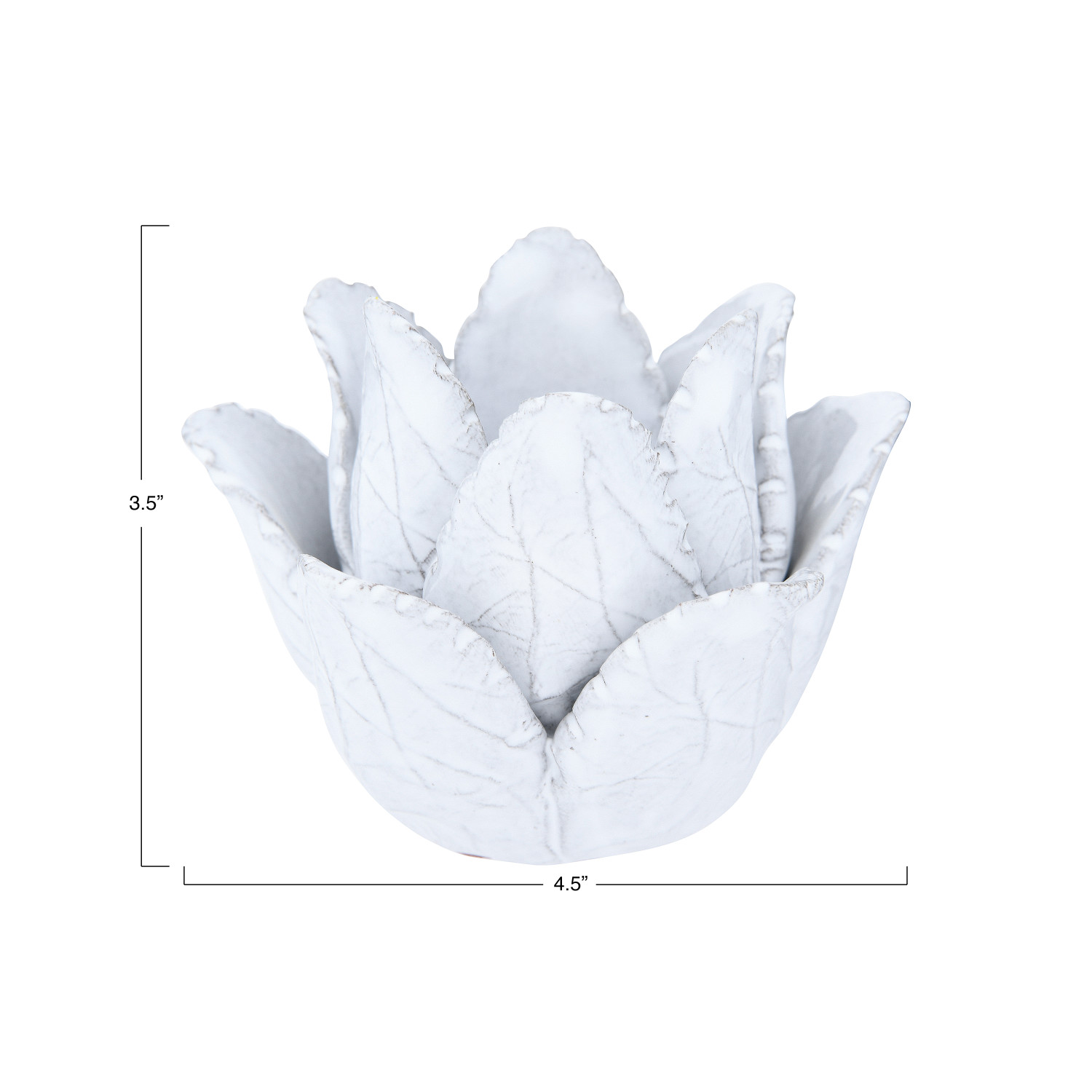 Catalog Name: 4" Round x 3"H Handmade Terra-cotta Flower Tealight Holder, White