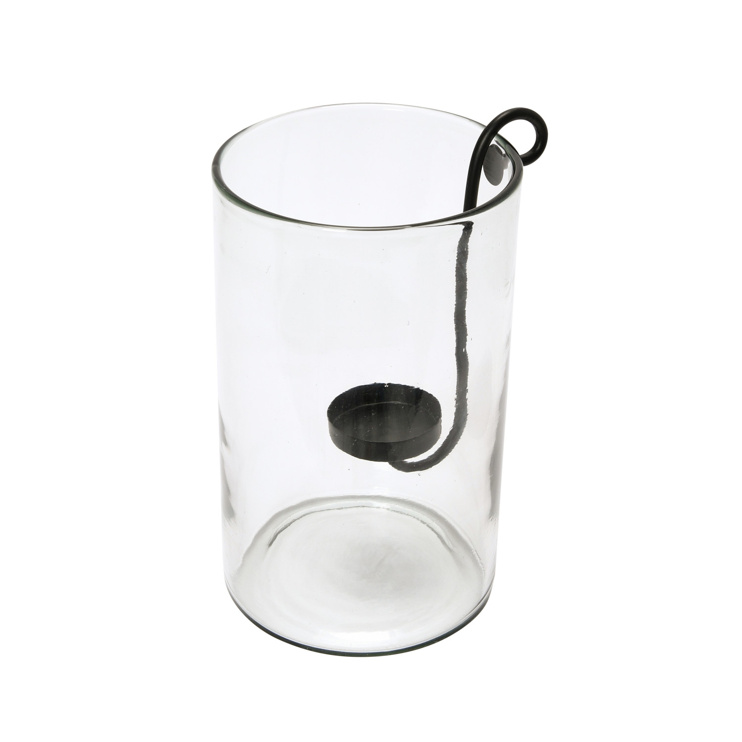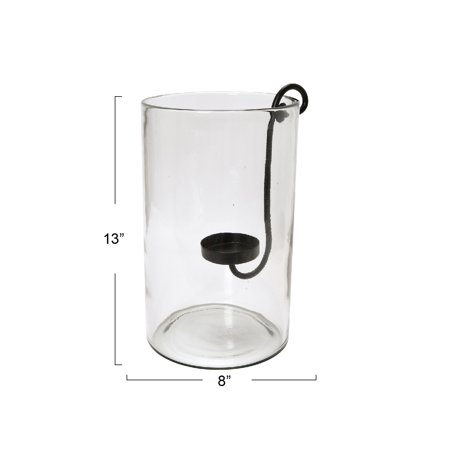 Catalog Name: 7-1/2" Round x 12-1/2"H Glass Hurricane w/ Metal Candle Holder, Black, Set of 2, Truck Ship
