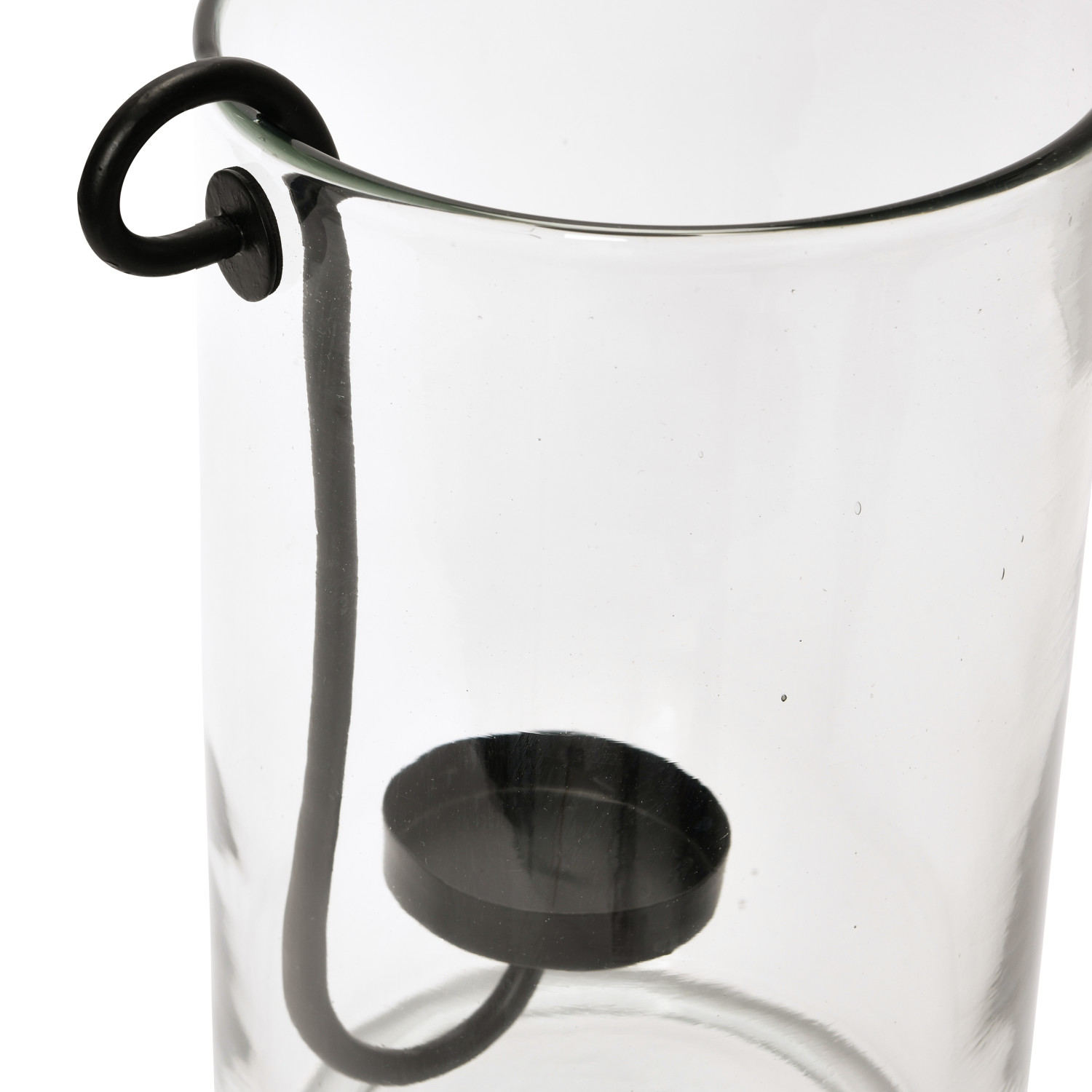 This minimalist glass hurricane showcases a sleek, attached metal candleholder.