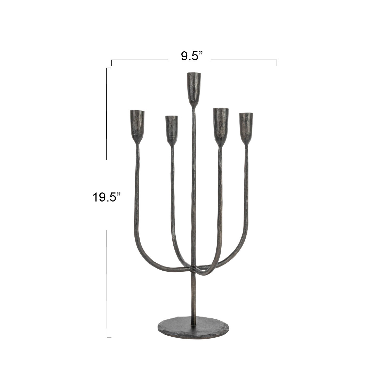 Catalog Name: 9-1/2" Round x 19-1/2"H Hand-Forged Metal Candelabra, Black (Holds 5 Tapers)