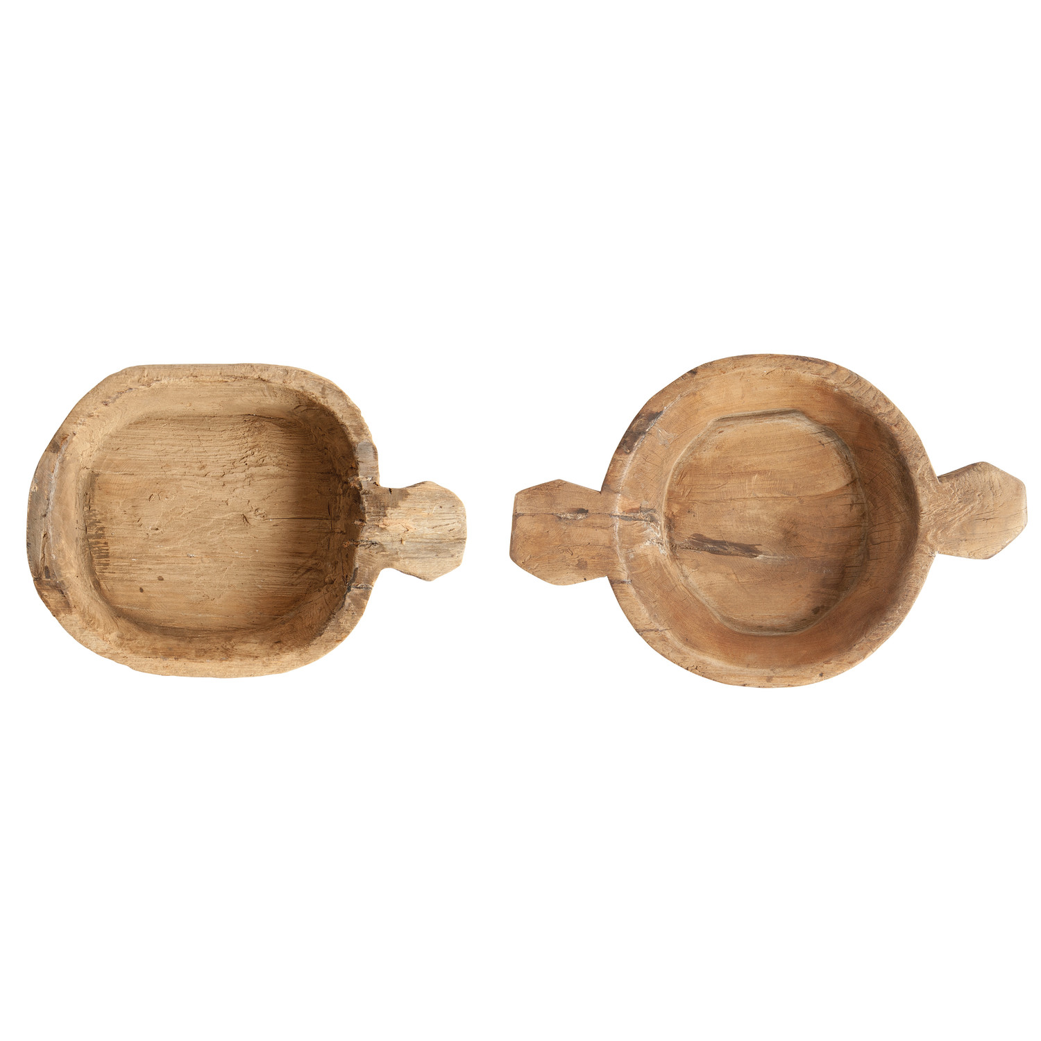 The distressed finish on this found wood bowl adds to the vintage appeal. Place on a foyer table for collecting loose change or keeping keys handy at all times. Use as a base for placing decorative balls or colorful pebbles. In the kitchen, use as the centerpiece for the table and keep the salt and pepper shakers inside.