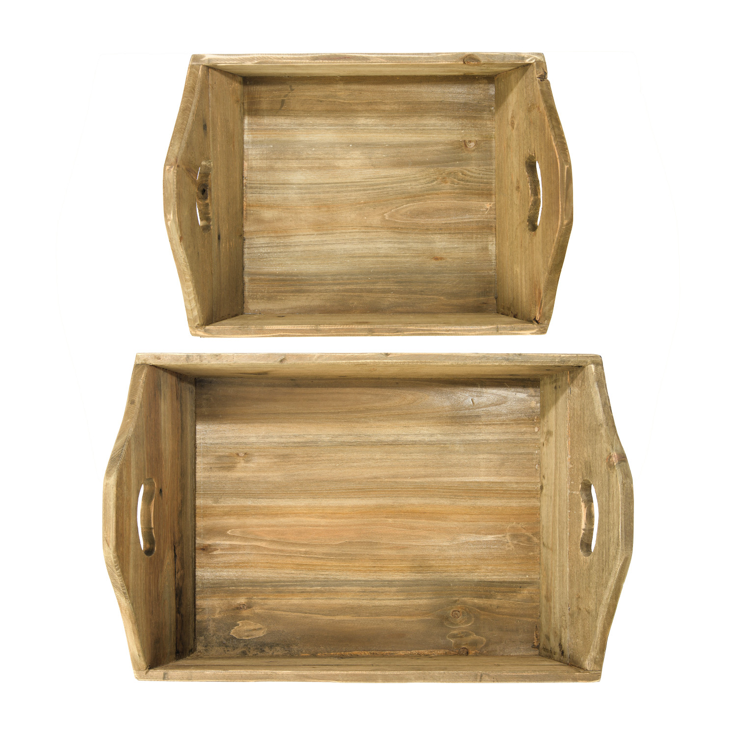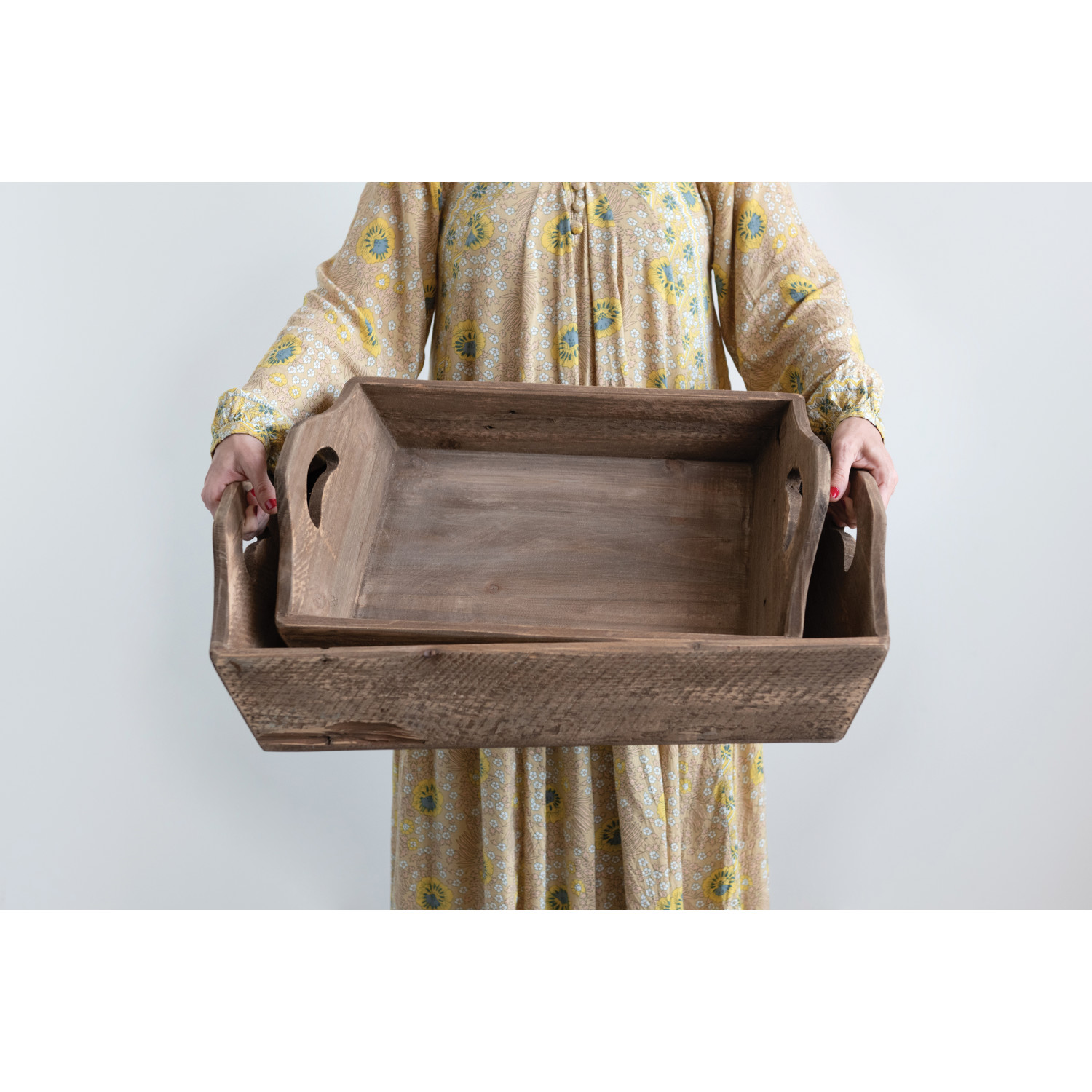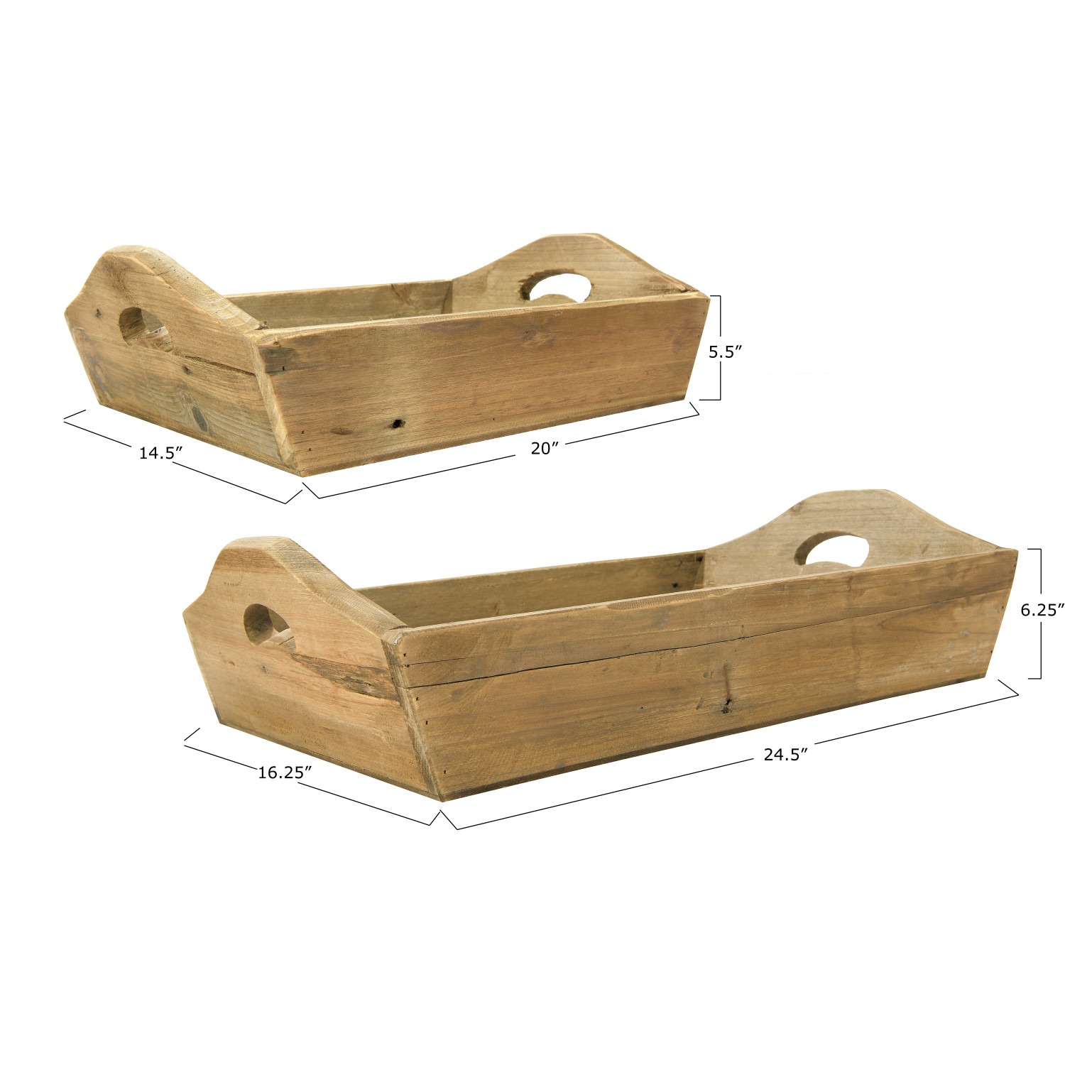 Catalog Name: 25"L x 16"W x 6"H & 20-1/4"L x 14-1/2"W x 6-3/4"H Decorative Wood Trays w/ Handles, Set of 2