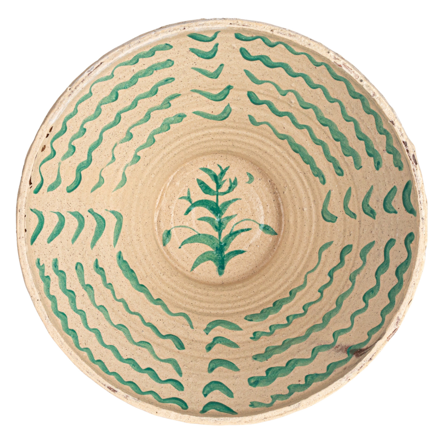 Catalog Name: 16-1/2" Round x 8-1/4"H Decorative Hand-Painted Terra-cotta Bowl w/ Pattern, Distressed Finish, Cream Color & Aqua, Truck Ship (Each One Will Vary)