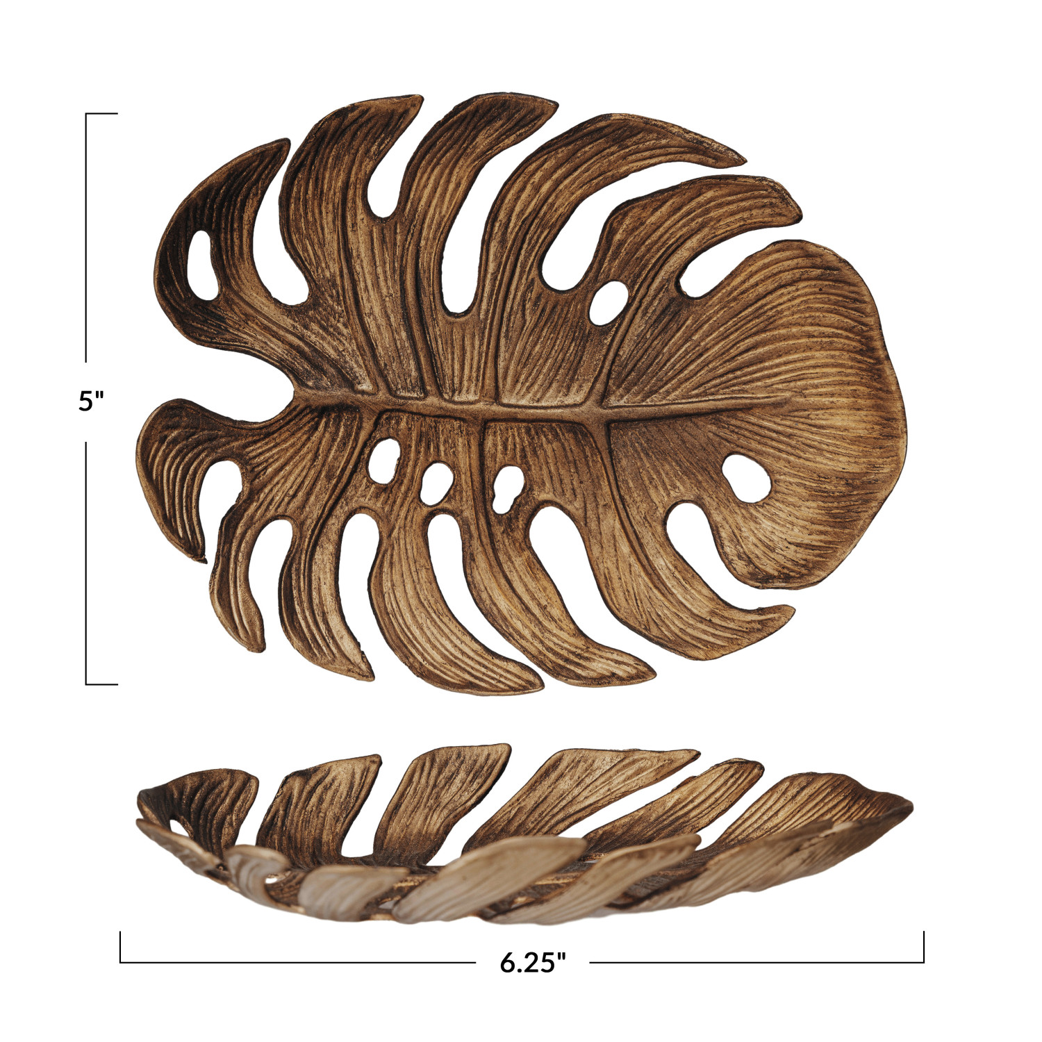 Catalog Name: 6-1/4"L x 5"W Decorative Pewter Monstera Leaf, Antique Gold Finish