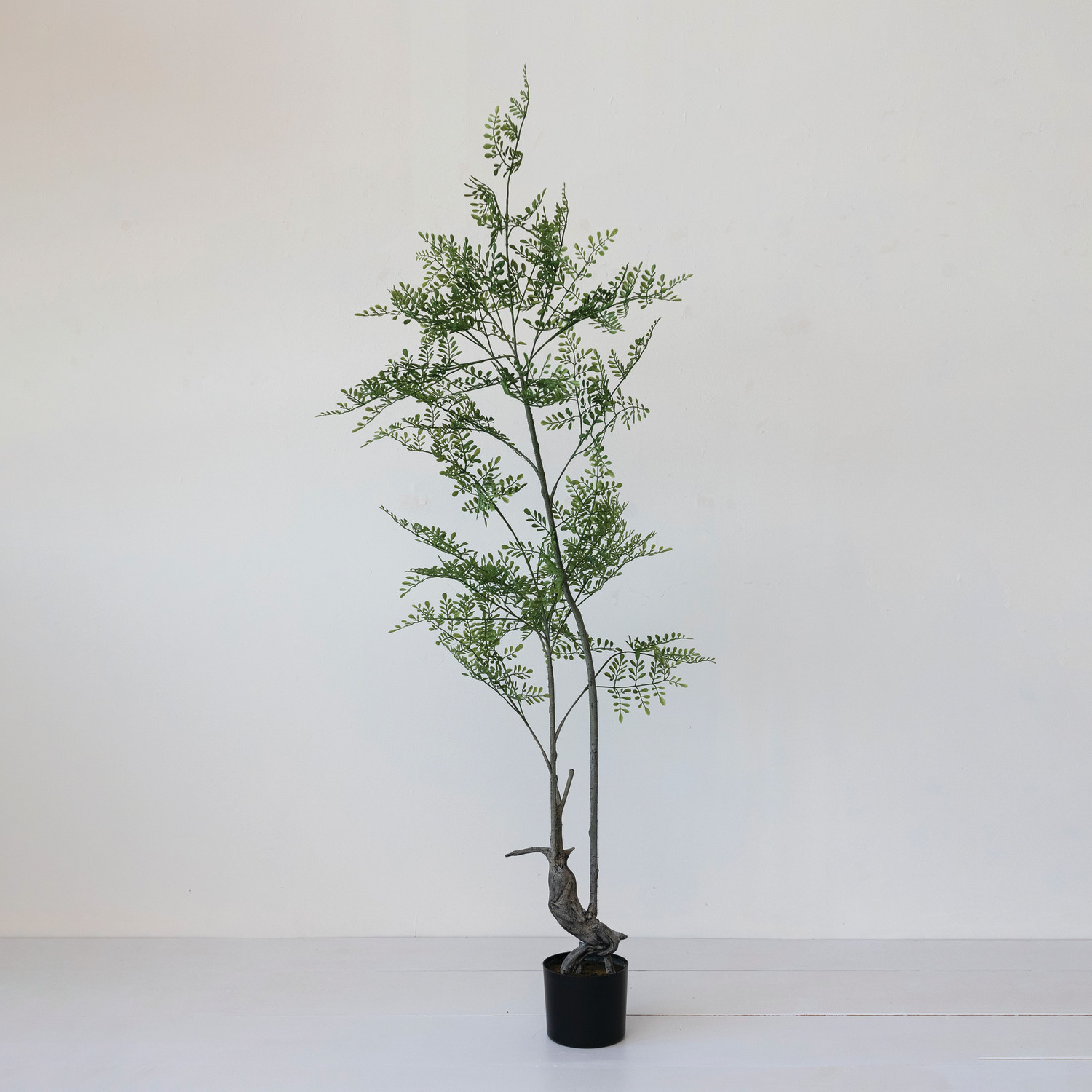 Add beauty and freshness to any space with this faux rue plant in a plastic pot. This lovely accessory features a realistic and low-maintenance faux botanical that has a green rue plant with delicate and feathery leaves. The rue plant is planted in a black plastic pot that is simple and sturdy and can be placed on the floor or on a stand. The plastic material is durable and lightweight and has a lifelike appearance and texture that mimics the real plant. The faux botanical only requires spot cleaning with a damp cloth and does not need any watering or pruning. It has a round shape that measures 27 inches in diameter and 64 inches in height, making it a sizable piece for any space. This faux rue plant in a plastic pot is a charming accessory that can enhance any farmhouse, botanical, garden, or cottagecore style home. It can be used to add beauty and freshness to any space with its lovely design and quality material.