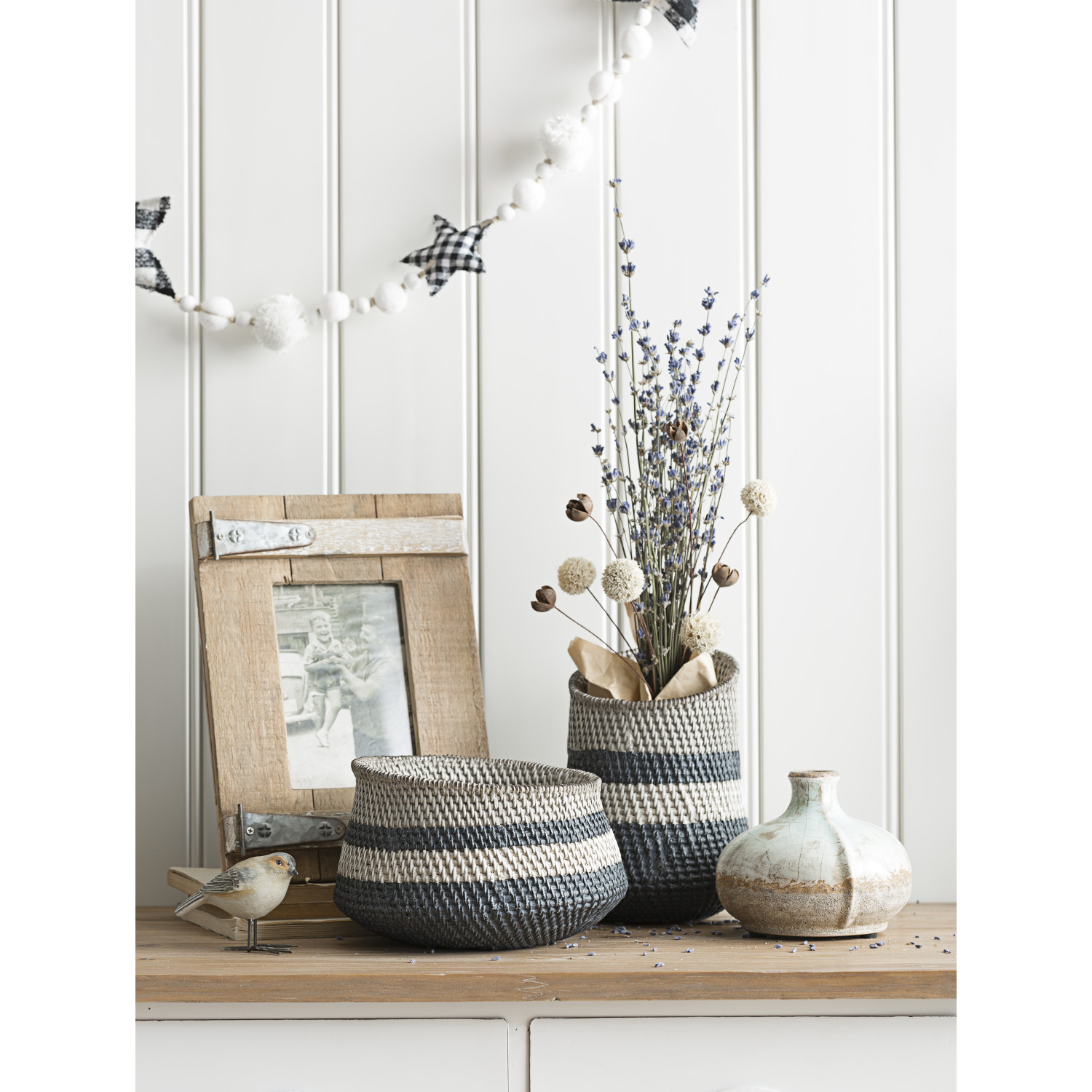 Catalog Name: 7-1/2" Round x 4-1/4"H Resin Basketweave Planter, Black Stripes